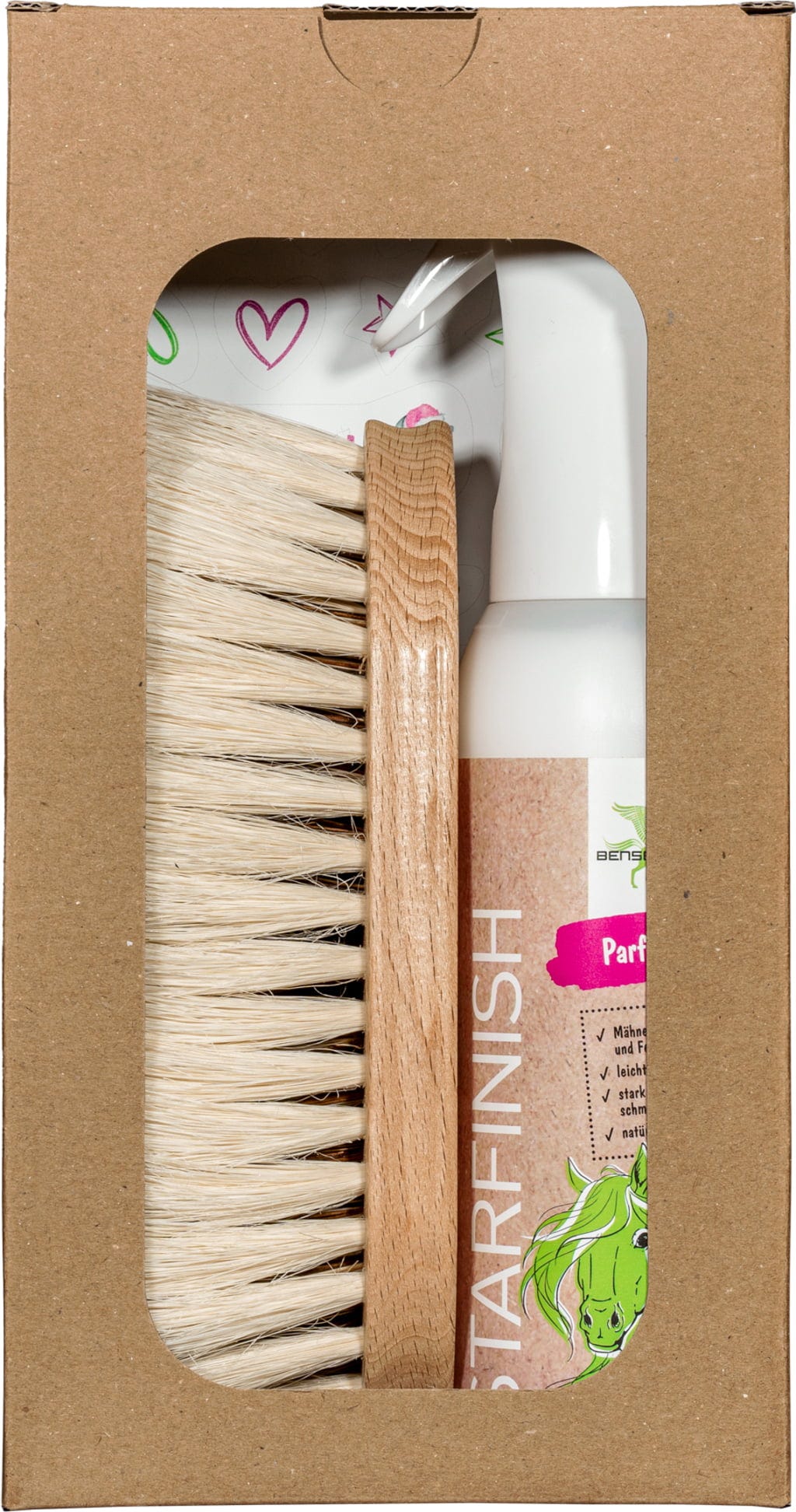 С този комплект, състоящ се от безароматния StarFinish и ефективната четка SchmutzLiese, можете да сте сигурни, че конят ви ще има перфектно поддържана козина!
