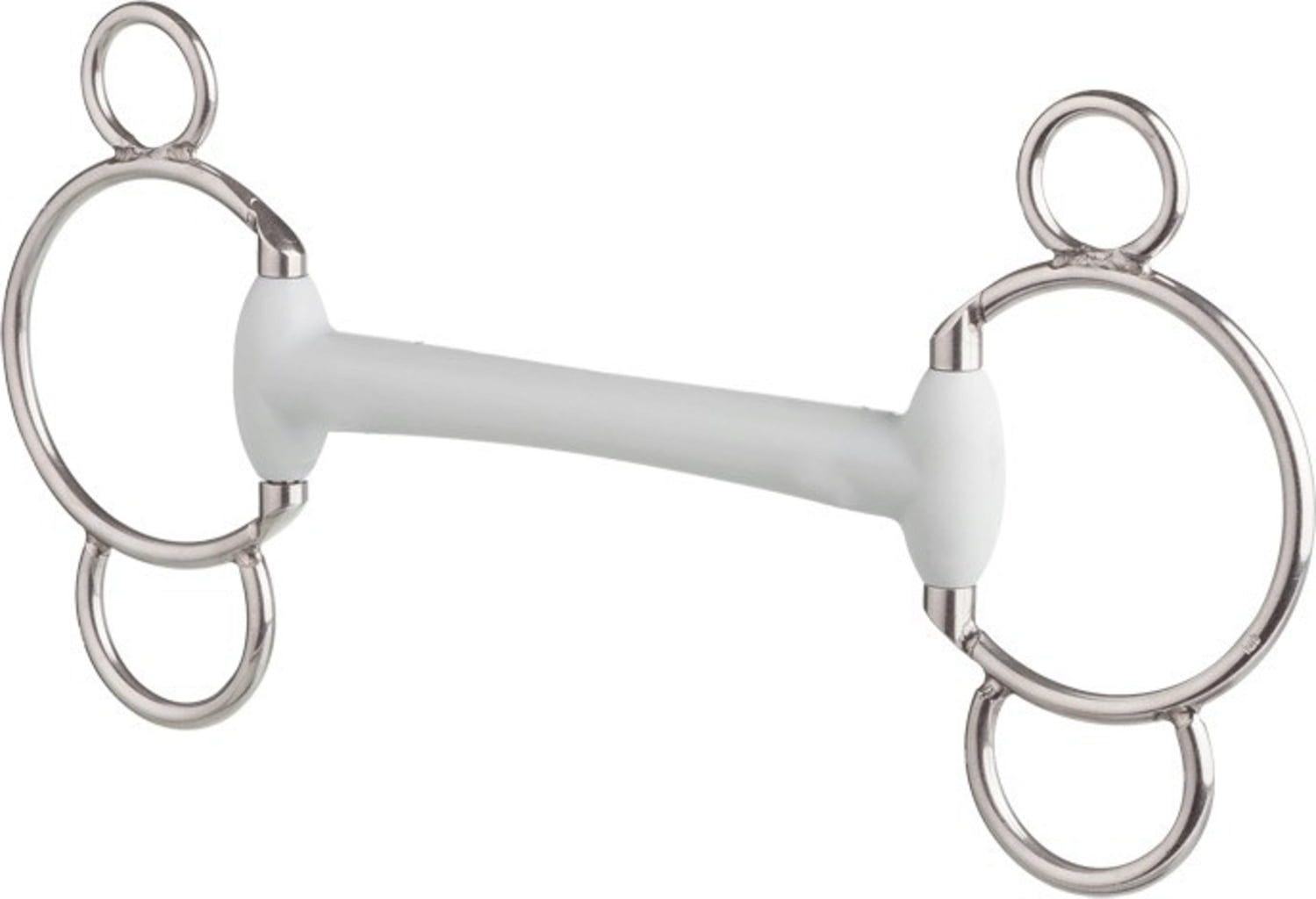 Тази трензела е универсална и предотвратява притискането на устните благодарение на фиксираните пръстени, като същевременно лежи особено спокойно и удобно в устата на коня.