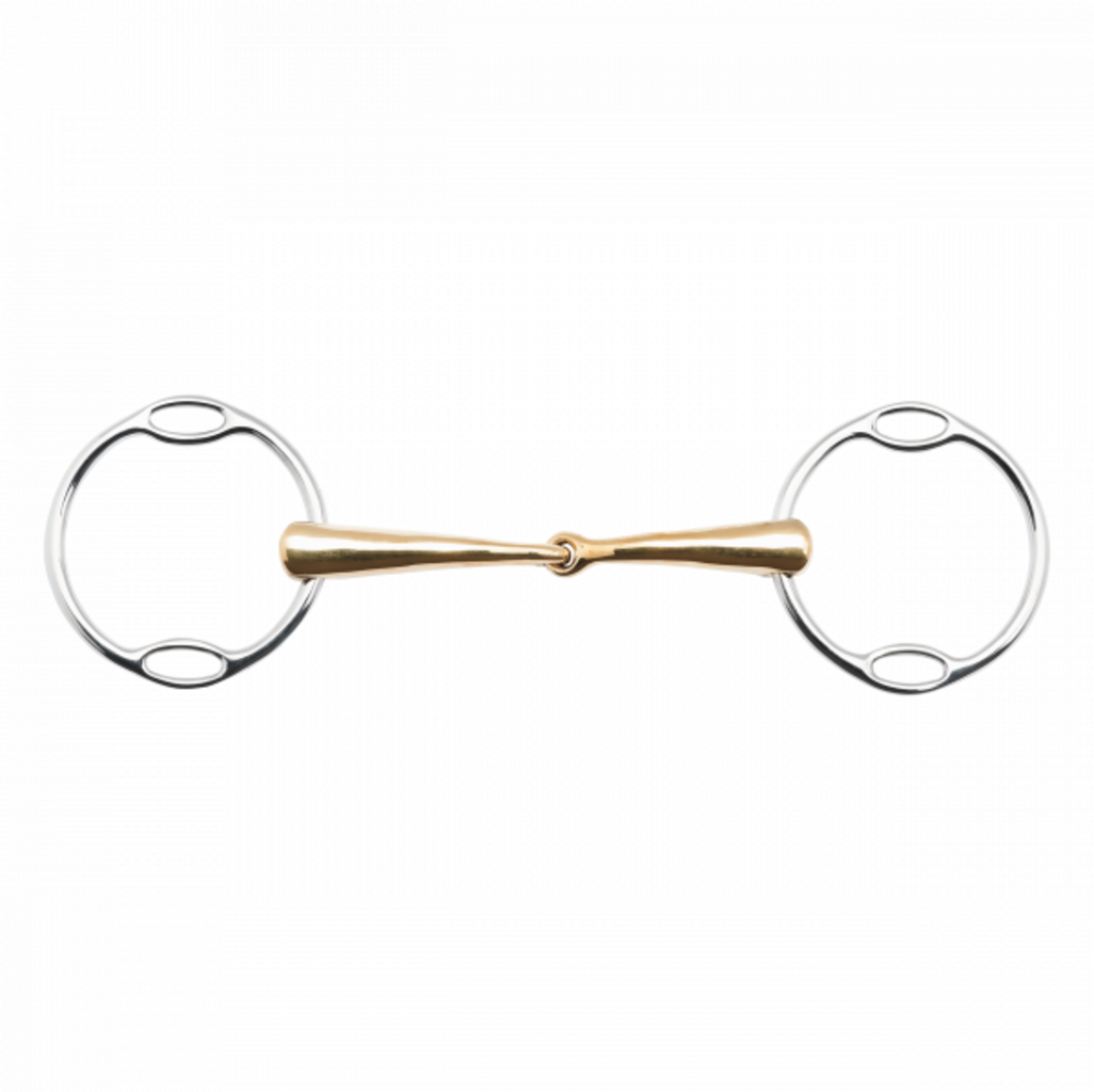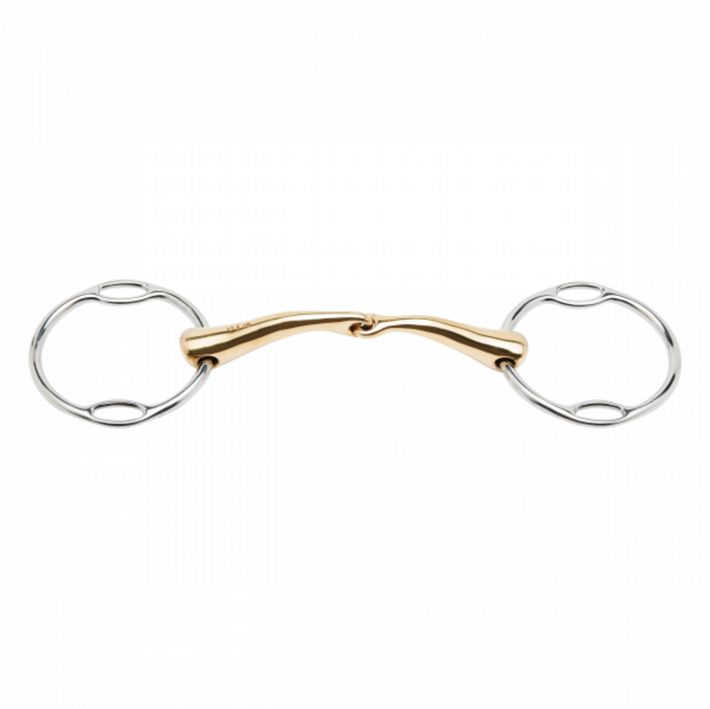 Този трензел Waterford със система от меки пръстени е оборудван с анатомично оформен мундщук. Адаптираната форма оптимално поддържа балансирано действие върху езика и лостовете. Специалната сплав Kaugan® също подобрява приемането в устата, като по този начин осигурява по-добро слюноотделяне и дъвкателна активност.