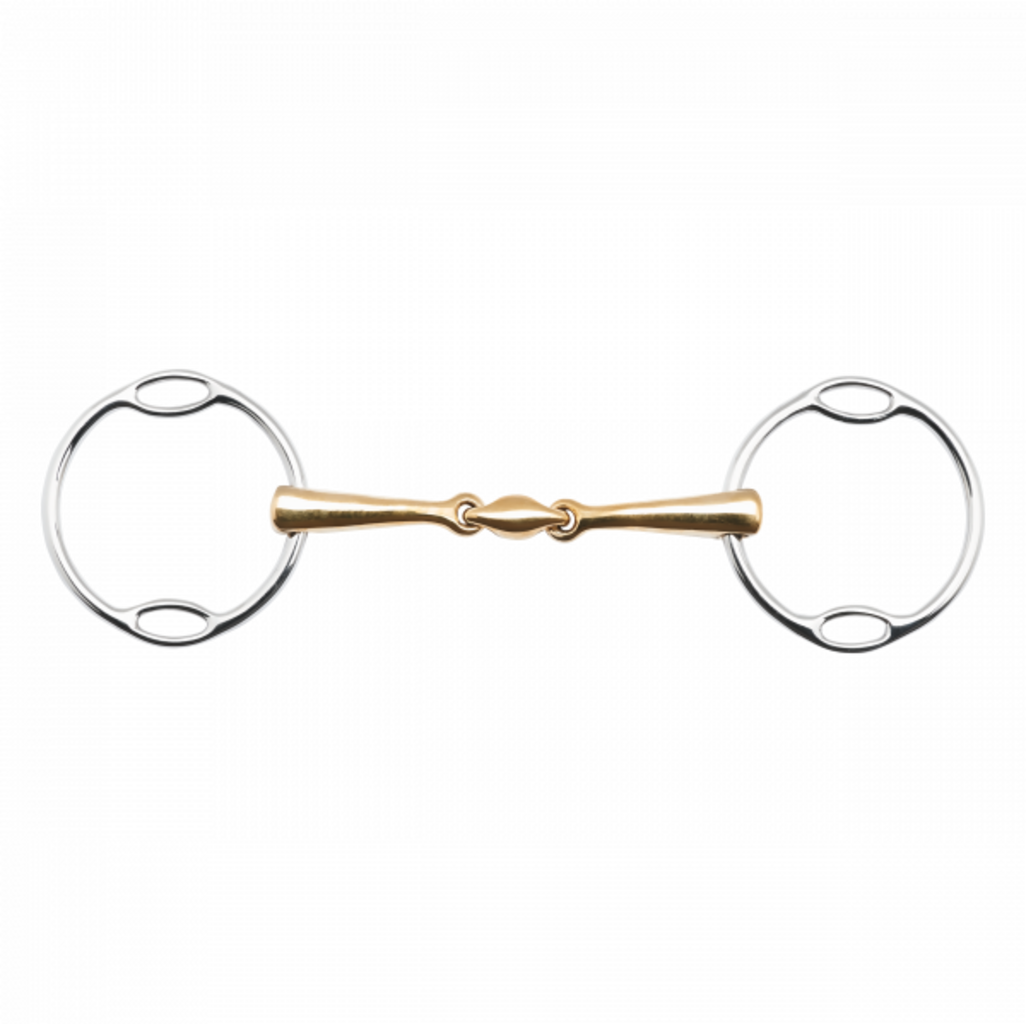 Този трензел Waterford с мека система от пръстени е оборудван с анатомично оформен мундщук и елипсовидна централна връзка. Адаптираната форма оптимално поддържа балансирано действие върху езика и лостовете. Специалната сплав Kaugan® също подобрява приемането в устата, като по този начин осигурява по-добро слюноотделяне и дъвкателна активност.