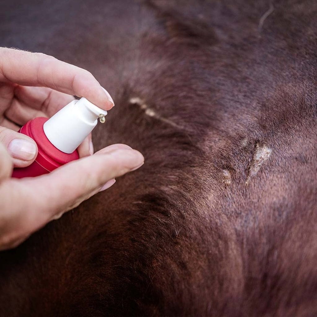Маслото е специална композиция за грижа за променени кожни участъци и ръбове на рани при конете. Основата от биологично масло от вечерна иглика е допълнена с натурални етерични масла като лавандула, цистус, розов здравец и синя лайка. Тези съставки са известни със своите подхранващи свойства и допринасят за това тъканта на по-стари или затворени повърхностни участъци да остане еластична.