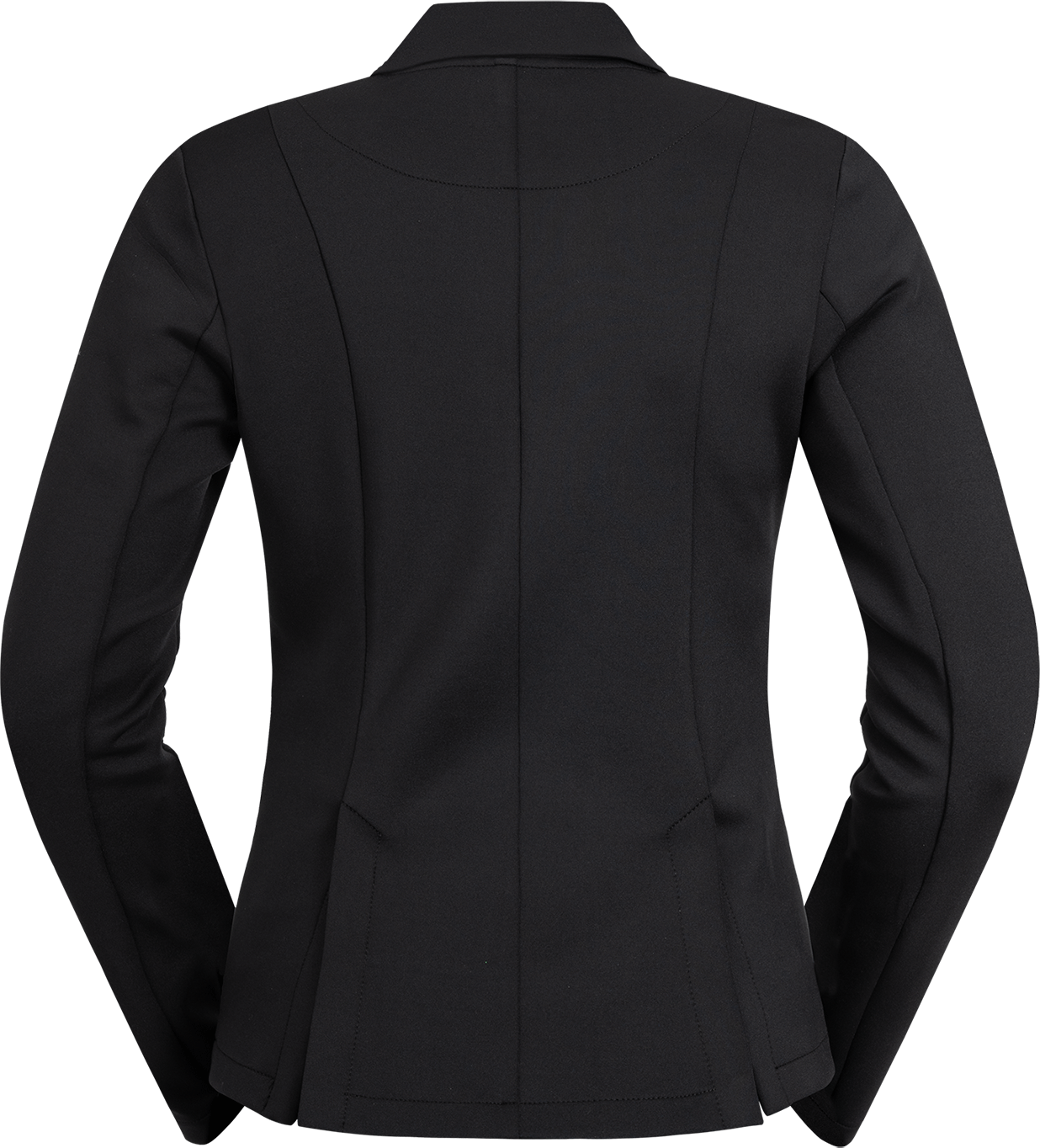Дишащата материя ви помага да запазите приятен телесен климат дори в напрегнати състезателни ситуации. Декоративните кристали на двата странични джоба поставят специални акценти и придават на сакото елегантна нотка. Благодарение на класическите шлицове за езда на гърба, сакото пада особено хармонично в седлото и ви гарантира професионална визия.