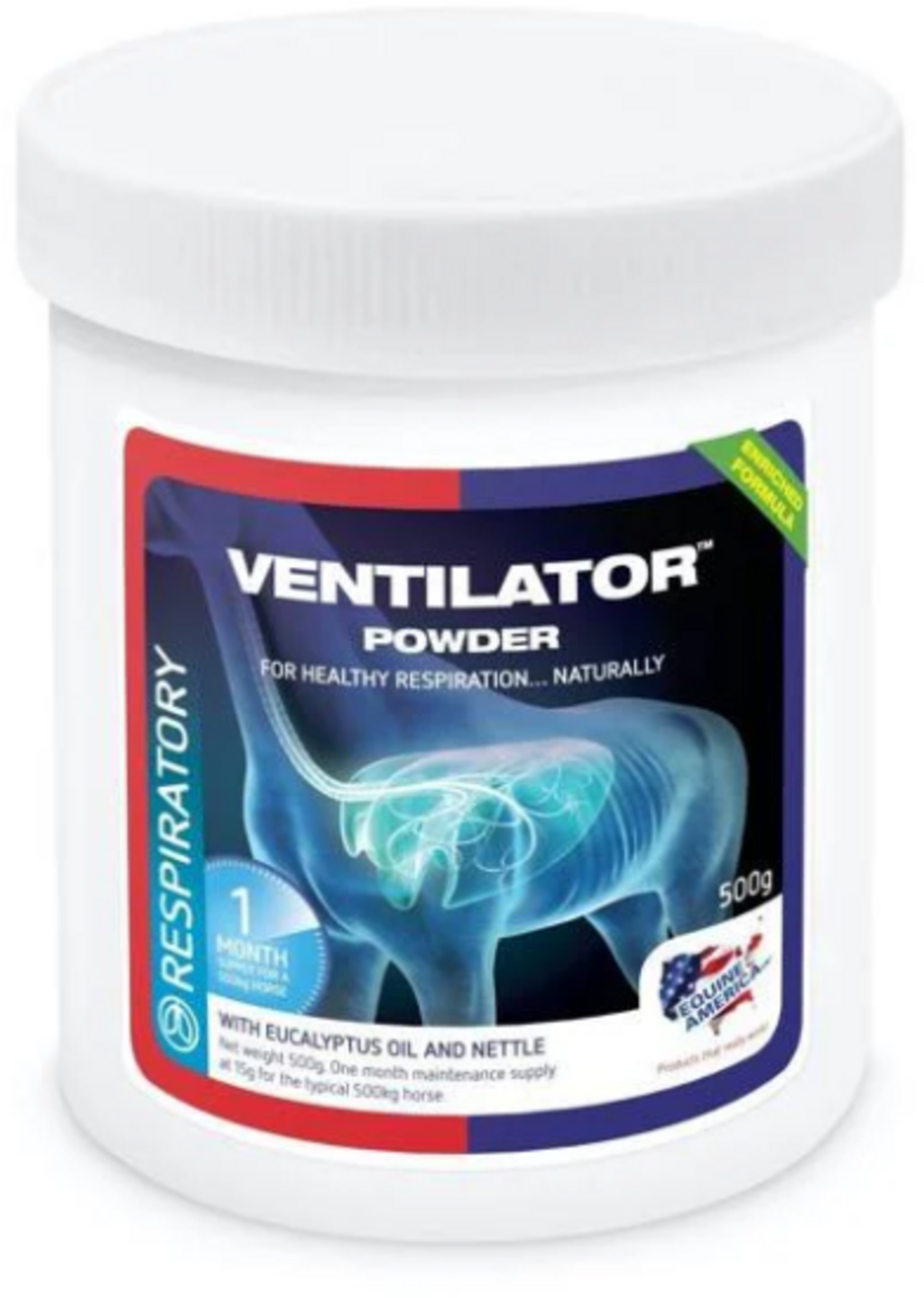 Прахът за вентилация предлага на вашия кон внимателно формулирана смес от билки и растителни екстракти, специално съобразени с нуждите на дихателната система. В ежедневието в конюшните конете често са изложени на частици като прах или спори от сено и постеля, които могат да раздразнят чувствителните им лигавици. Етеричните масла от евкалипт и мента, както и ментолът, помагат за поддържане на дихателните пътища чисти, докато съставки като глицерин осигуряват успокояващ ефект.