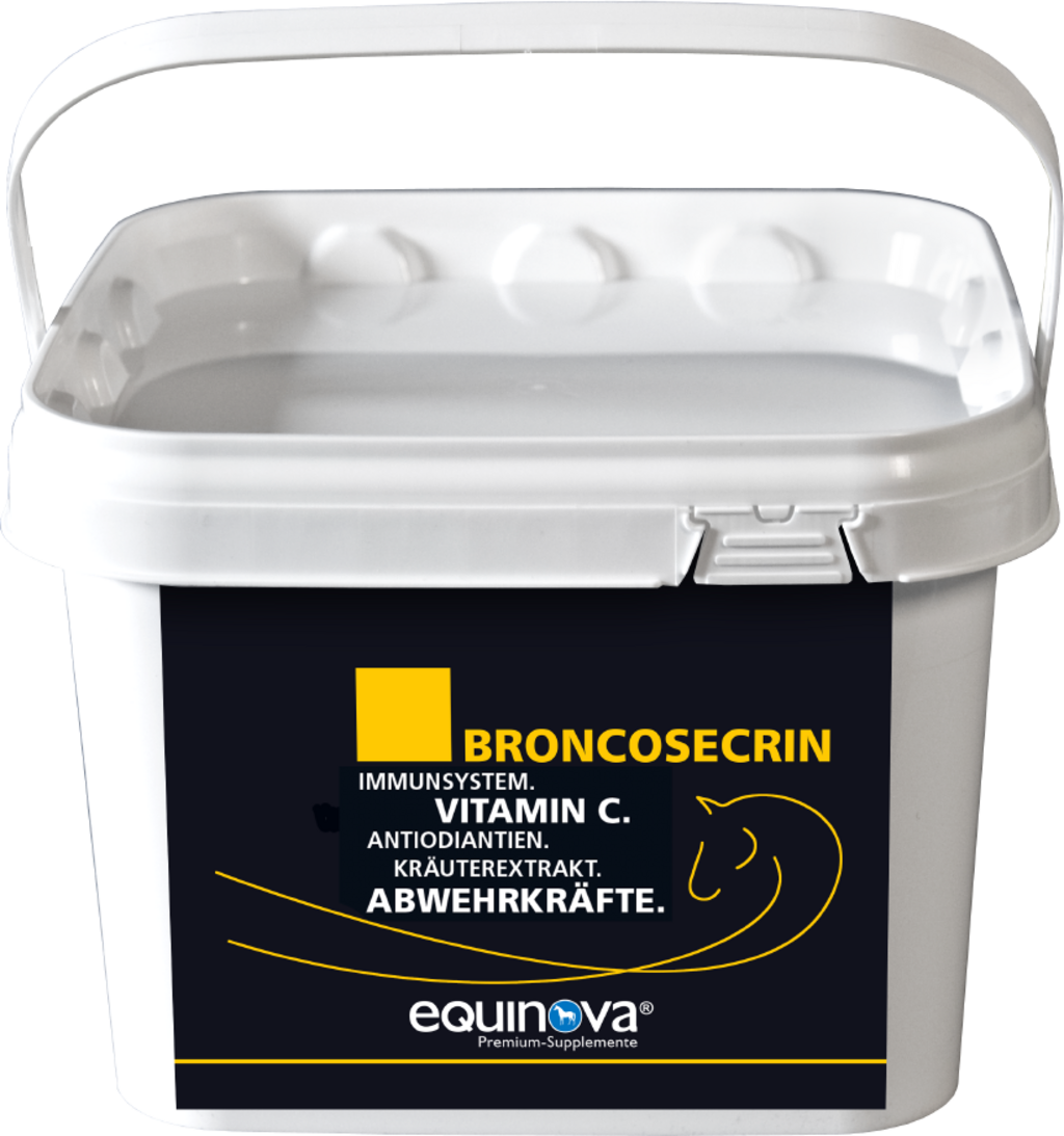 Особено в преходния период между сезоните кашлицата се появява по-често. Използването на доказани билкови растения в Broncosecrin подпомага здравословната функция на дихателните пътища в случай на респираторни проблеми. Допълнителните витамини укрепват имунната система на вашия кон и действат като уловители на свободните радикали.