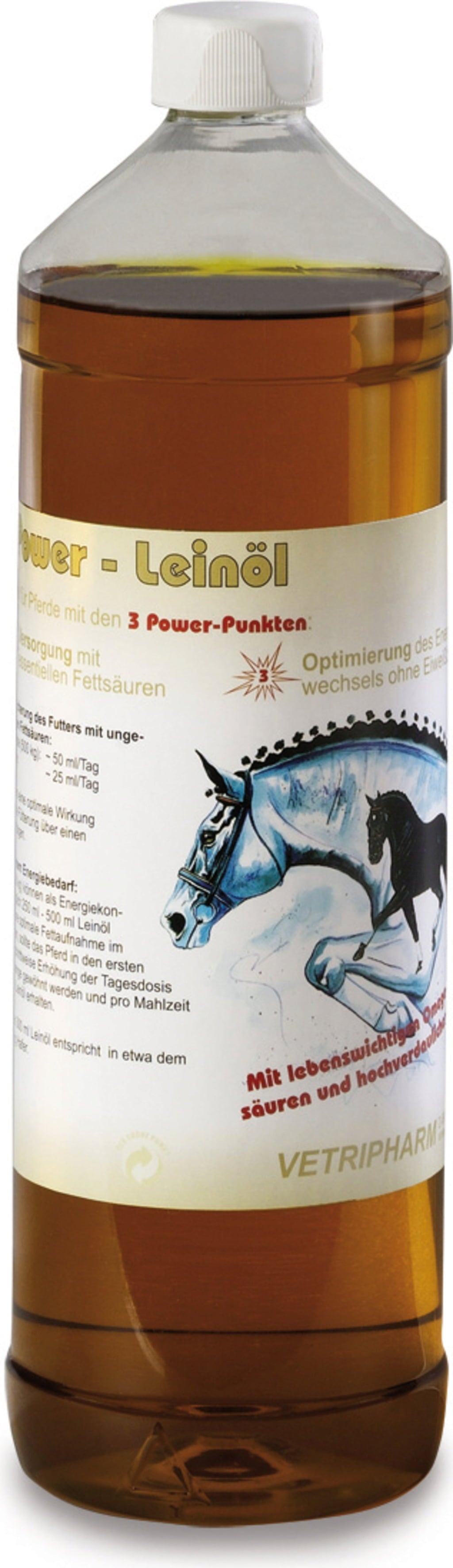 Лененото масло EquiPower осигурява ненаситени омега-3 мастни киселини, които от една страна поддържат балансиран тен и красива козина, но от друга могат да допринесат и за нормалното храносмилане и функцията на черния дроб. В допълнение, лененото масло осигурява енергия с ниско съдържание на протеини и оптимизира енергийния метаболизъм.