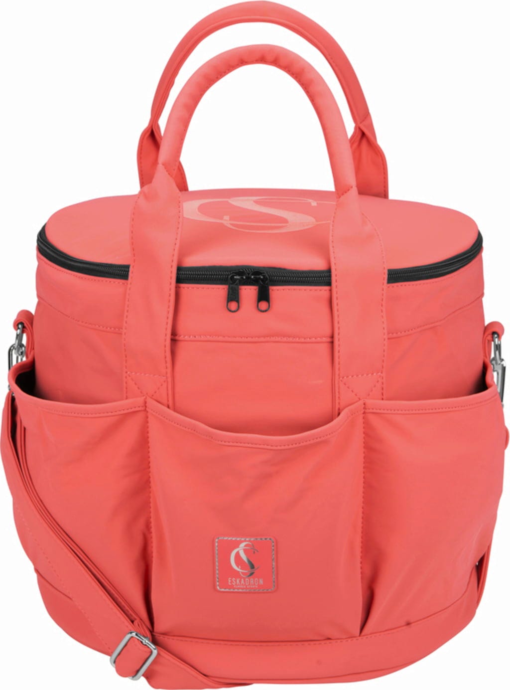 Тази универсална чанта предлага достатъчно място за съхранение и практични отделения, за да поддържате конната си екипировка организирана и леснодостъпна. Разполага с дръжки за носене, ленти и висококачествен, лъскав сребърен обков. Здравият лъскав външен материал е устойчив на замърсявания и лесен за почистване. Чантата се затваря с цип за спретнато съхранение.
