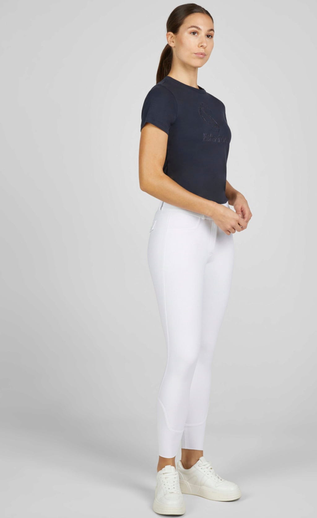 Еластичните гамаши за езда в новото лятно качество с 4-посочна еластичност прилягат свободно и леко около краката, седалището и бедрата. Класическият им, тонален дизайн перфектно подчертава дизайна на бричовете. С цип, копчета и примки за колан на широката талия.