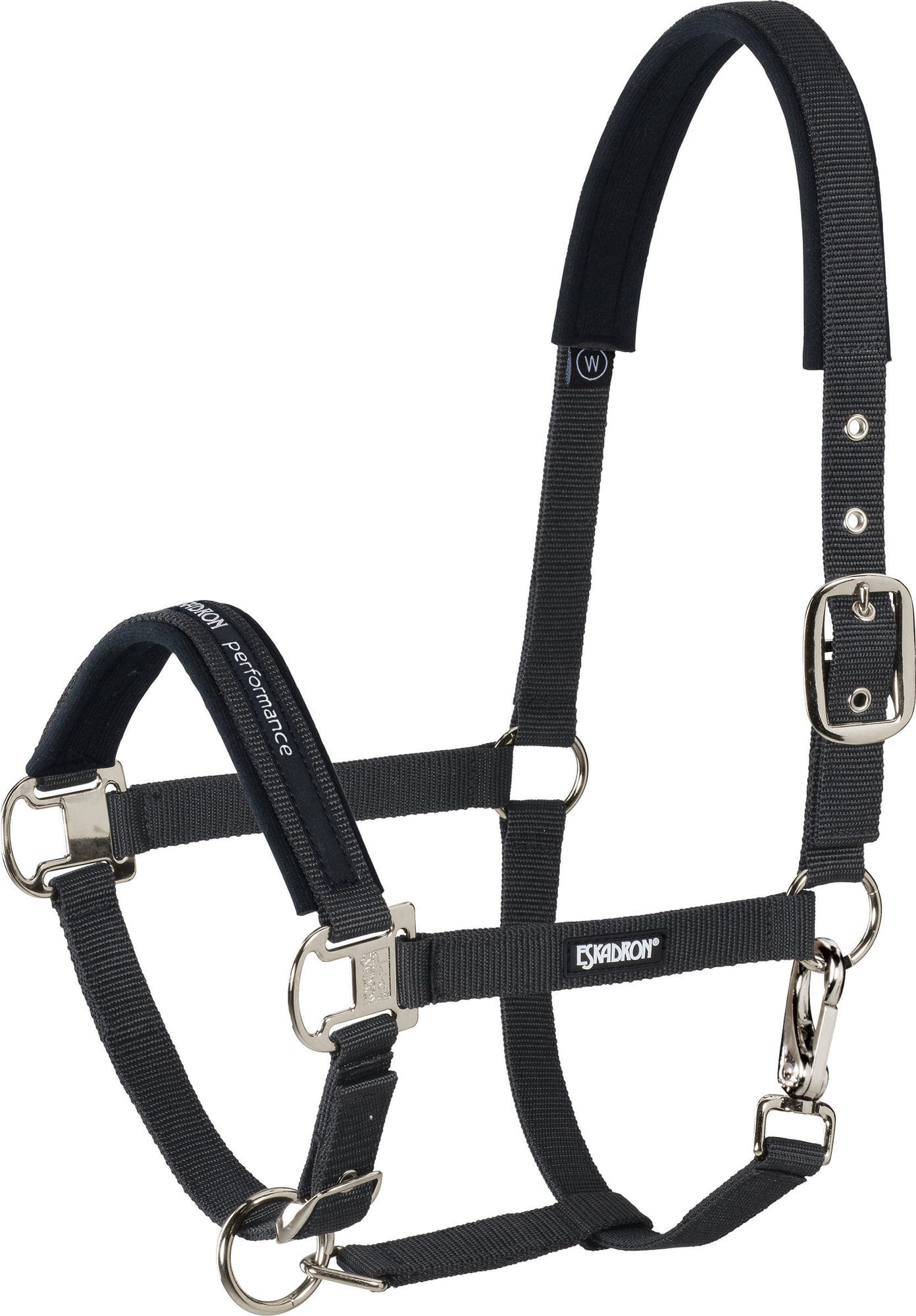 Индивидуално регулируем халтер със здрави катарами на брадичката и тила. Меката неопренова подплата повишава комфорта и предотвратява протриването. Декориран със стилни детайли Eskadron.