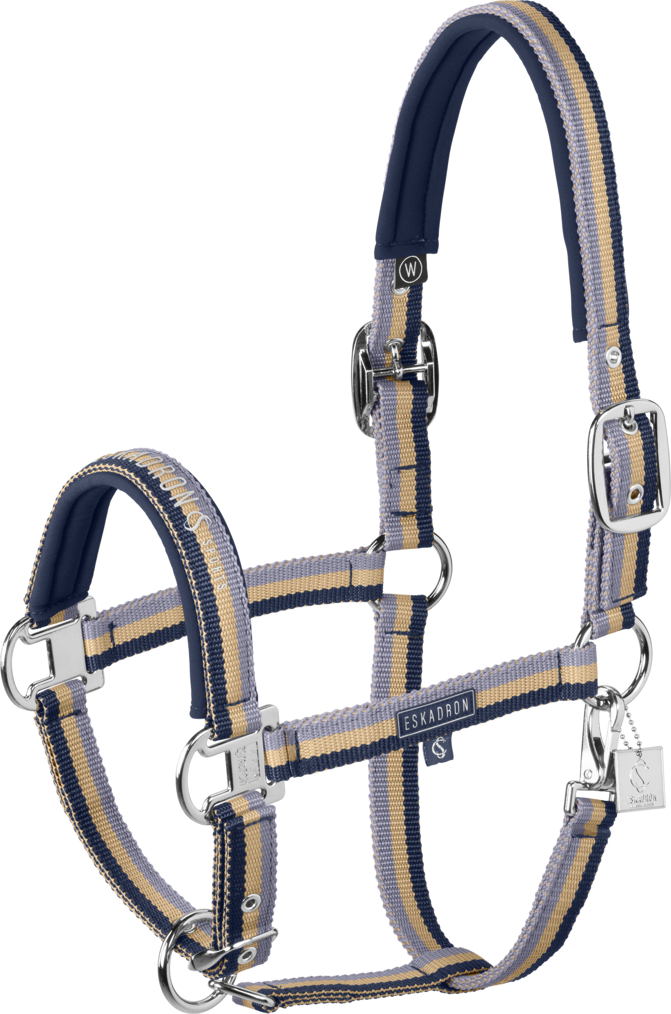 Независимо дали е за употреба в конюшня или за транспорт, оглавникът Double Pin впечатлява със своята устойчива на разкъсване лента и мека подплънка на носа и тила. Закопчаванията с катарами от двете страни позволяват лесно боравене и идеално центриране върху главата на коня, а спортният раиран дизайн добавя модерен щрих.