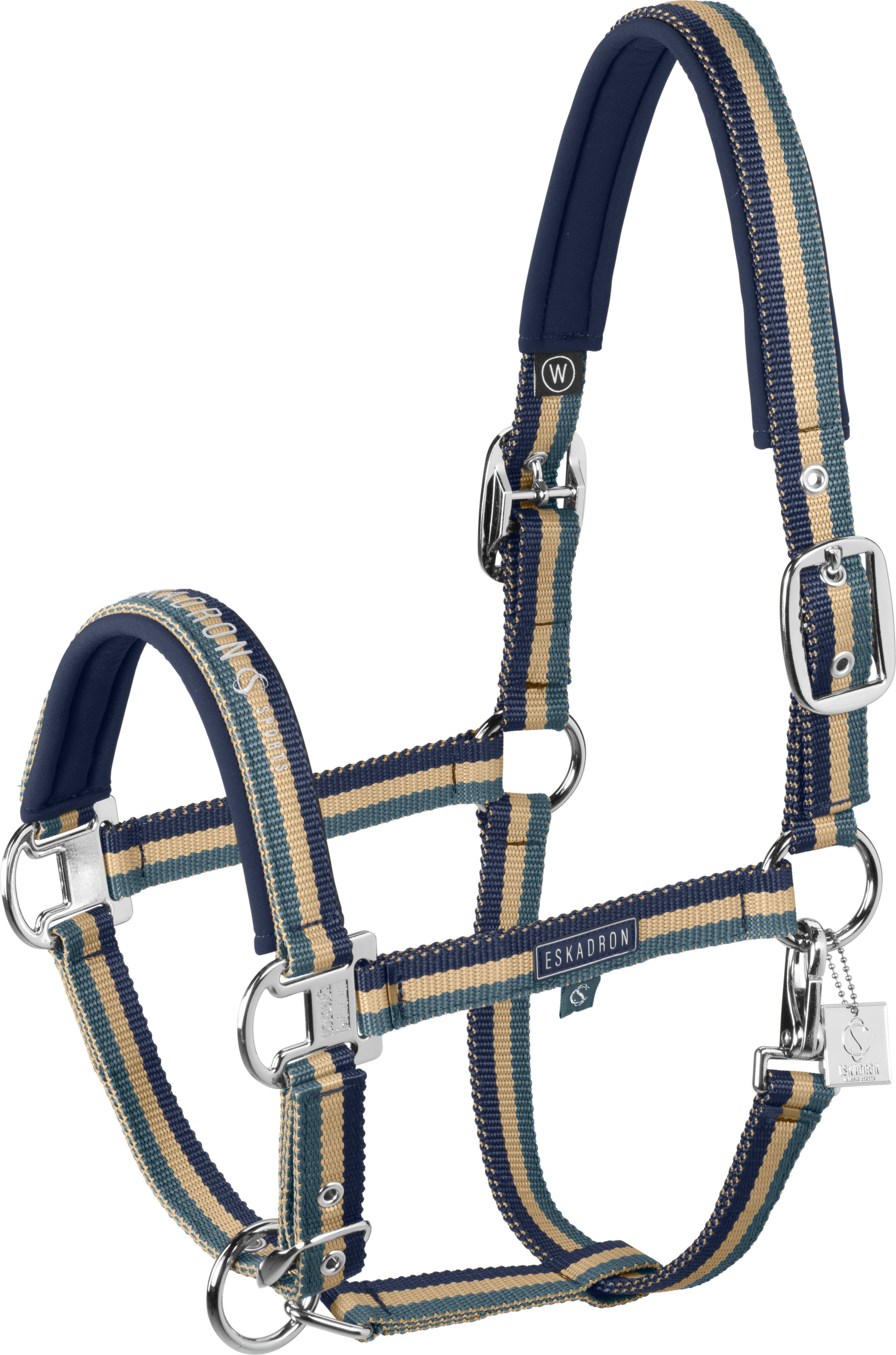 Независимо дали е за употреба в конюшня или за транспорт, оглавникът Double Pin впечатлява със своята устойчива на разкъсване лента и мека подплънка на носа и тила. Закопчаванията с катарами от двете страни позволяват лесно боравене и идеално центриране върху главата на коня, а спортният раиран дизайн добавя модерен щрих.