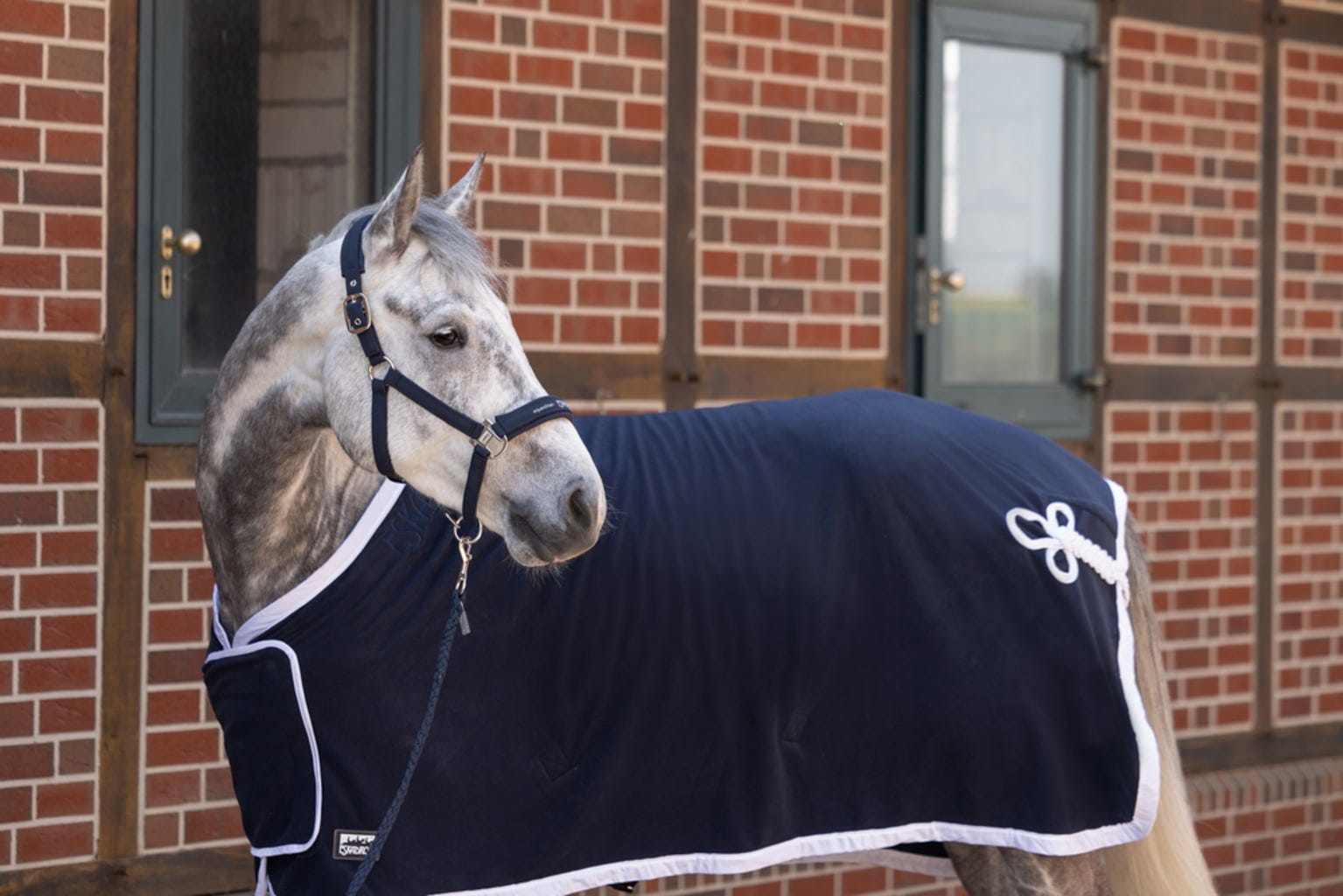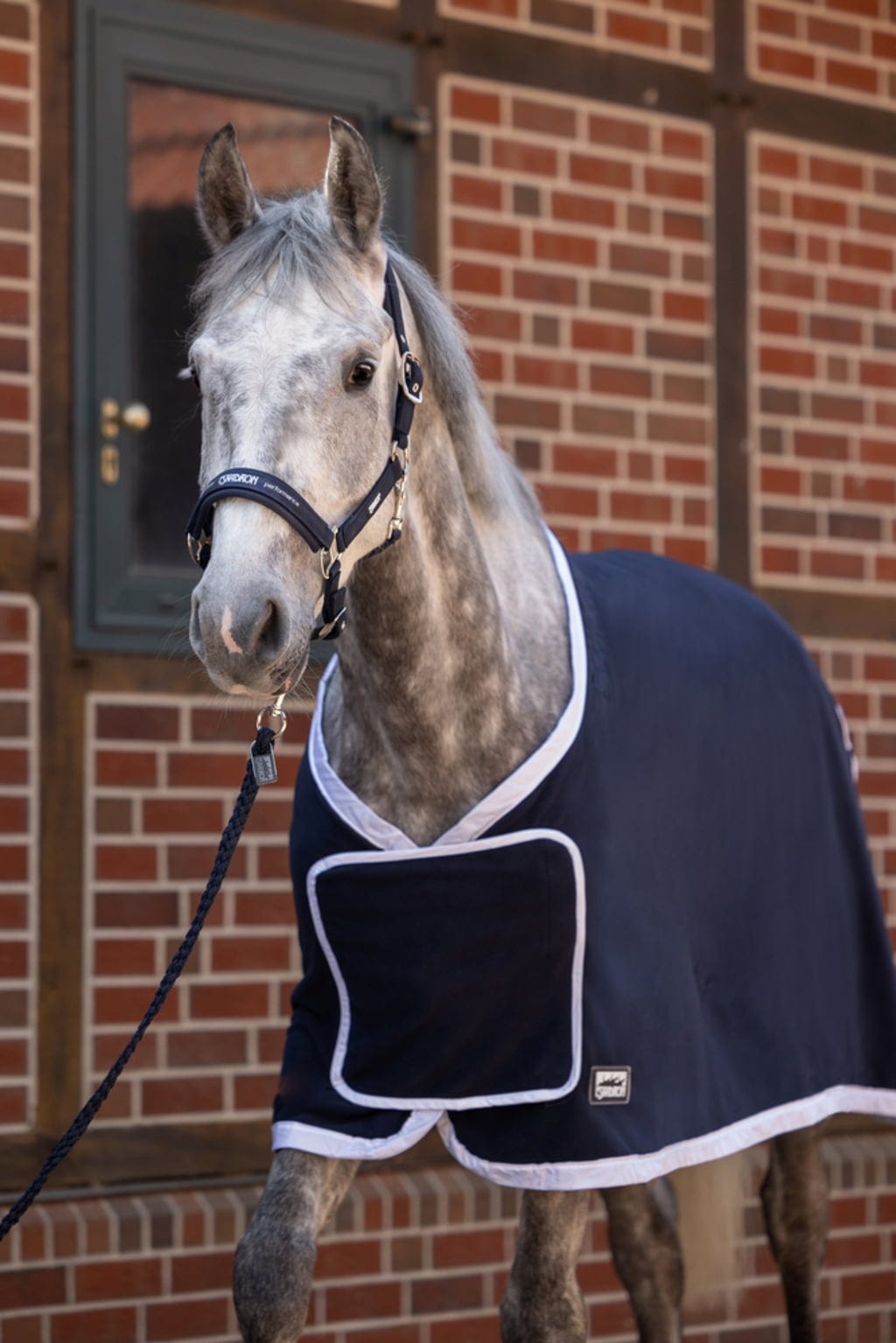 С хладилното одеяло Eskadron, изработено от висококачествен полар, вие сте перфектно екипирани – независимо дали сте в конюшнята, на състезание или по време на транспорт. Дишащият материал осигурява комфортен климат и спомага за оптимално отвеждане на влагата. Благодарение на елегантната кройка на одеялото за изложби с капак на гърдите и изискани детайли като лъскавата тапицерия и декоративния шнур на опашката, вашият кон ще бъде не само функционално, но и изключително стилно екипиран.