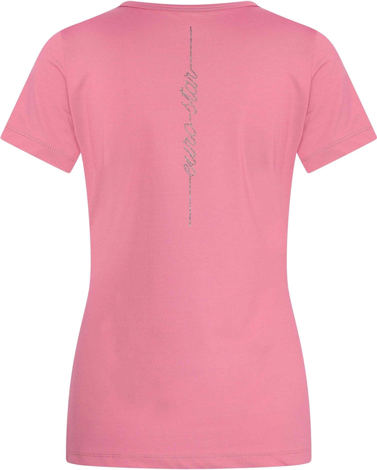 Класическа тениска с удобна, функционална структура. Дишаща и бързосъхнеща материя, която поддържа горната част на тялото суха. Декорирана с красиви апликации от кристали.