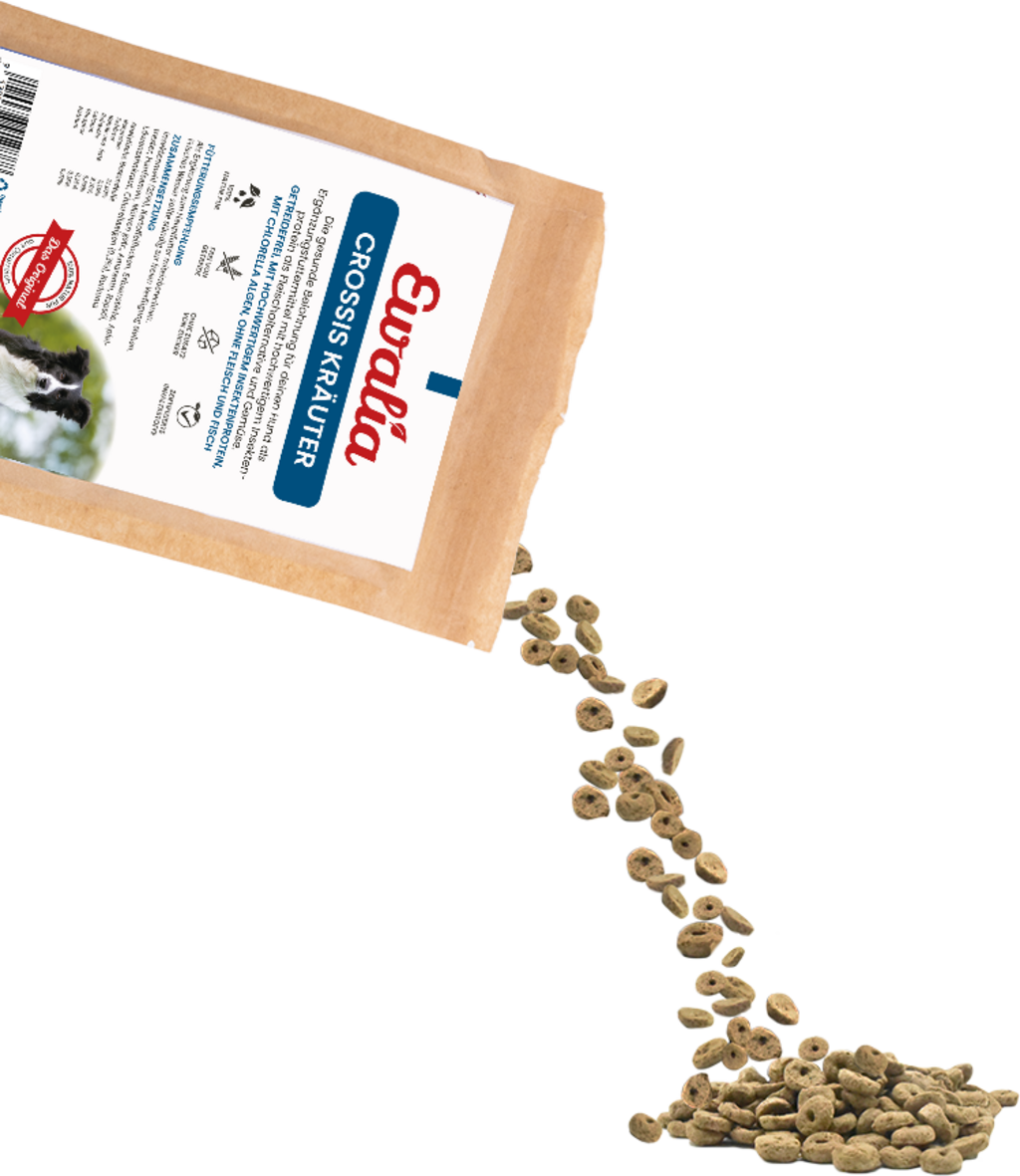 Hanfsamen, Löwenzahnkraut, getrocknete Karotten, Rapsöl, Kurkumawurzel, Insektenprotein, Apfeltrester, Kartoffelflocken, Chlorella Algen, Amaranth, Erbsenstärke