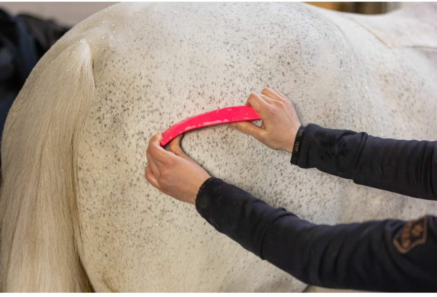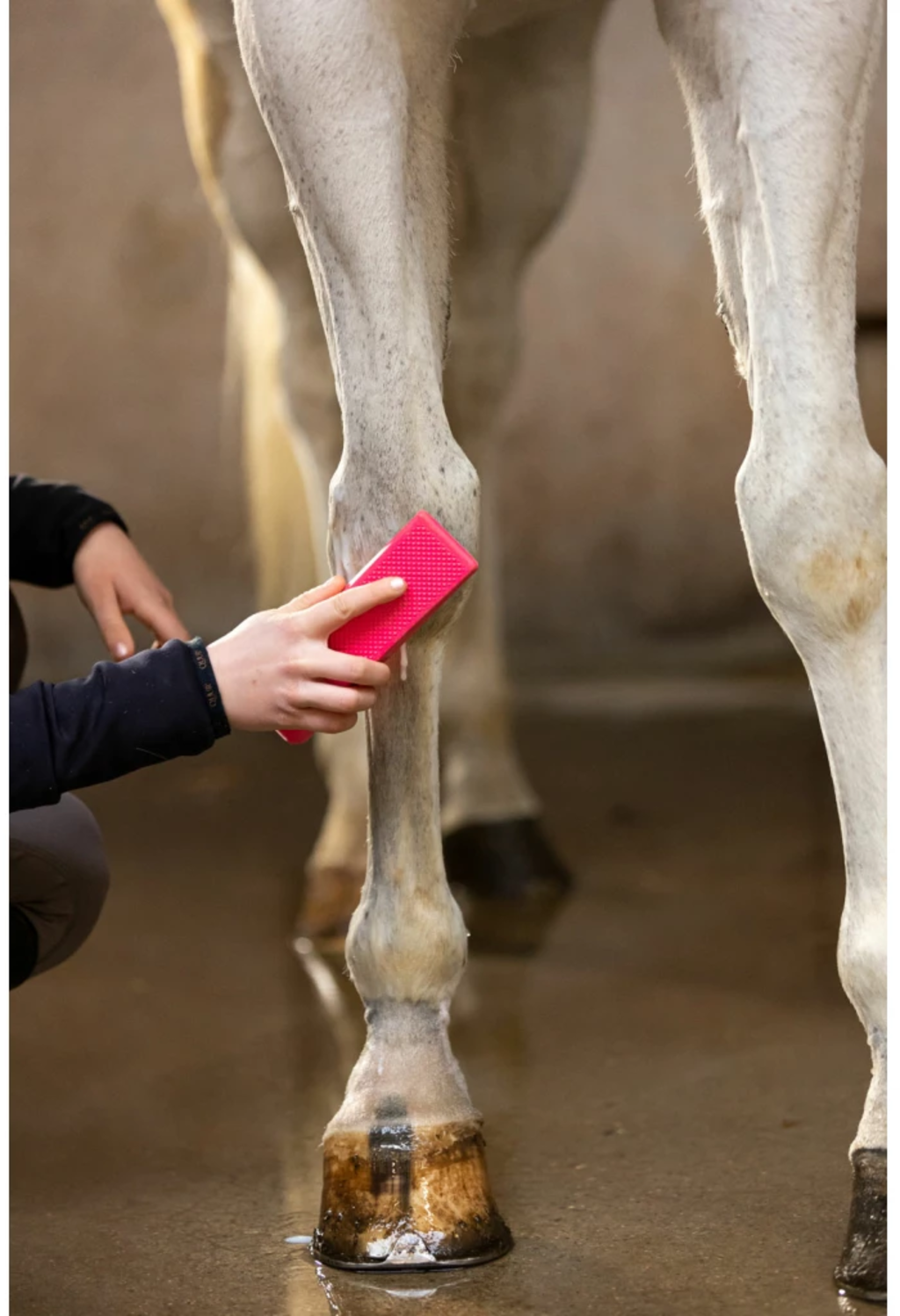 Четката за груминг на коне Excellent е перфектният спътник за груминг на вашия кон – незаменима във всяка кутия или чанта за груминг в конюшнята. Фината ѝ дръжка я прави удобна за хващане и лесна за употреба. Използвайте четката за сресване, масажиране и измиване на козината на коня, за да възстановите блясъка ѝ. Благодарение на своята универсалност, четката може да се използва и за премахване на косми от дрехи, одеяла и други повърхности. Къса страна за краката и главата – идеална за прецизно груминг. Дълга страна за навиване, масажиране, почистване и лъскане на козината. Универсална употреба и като стъргалка за пот. Ергономична дръжка за удобна употреба. Размери: Размер M: 17,5 x 5 x 2 см. Размер L: 23 x 6,5 x 3 см.