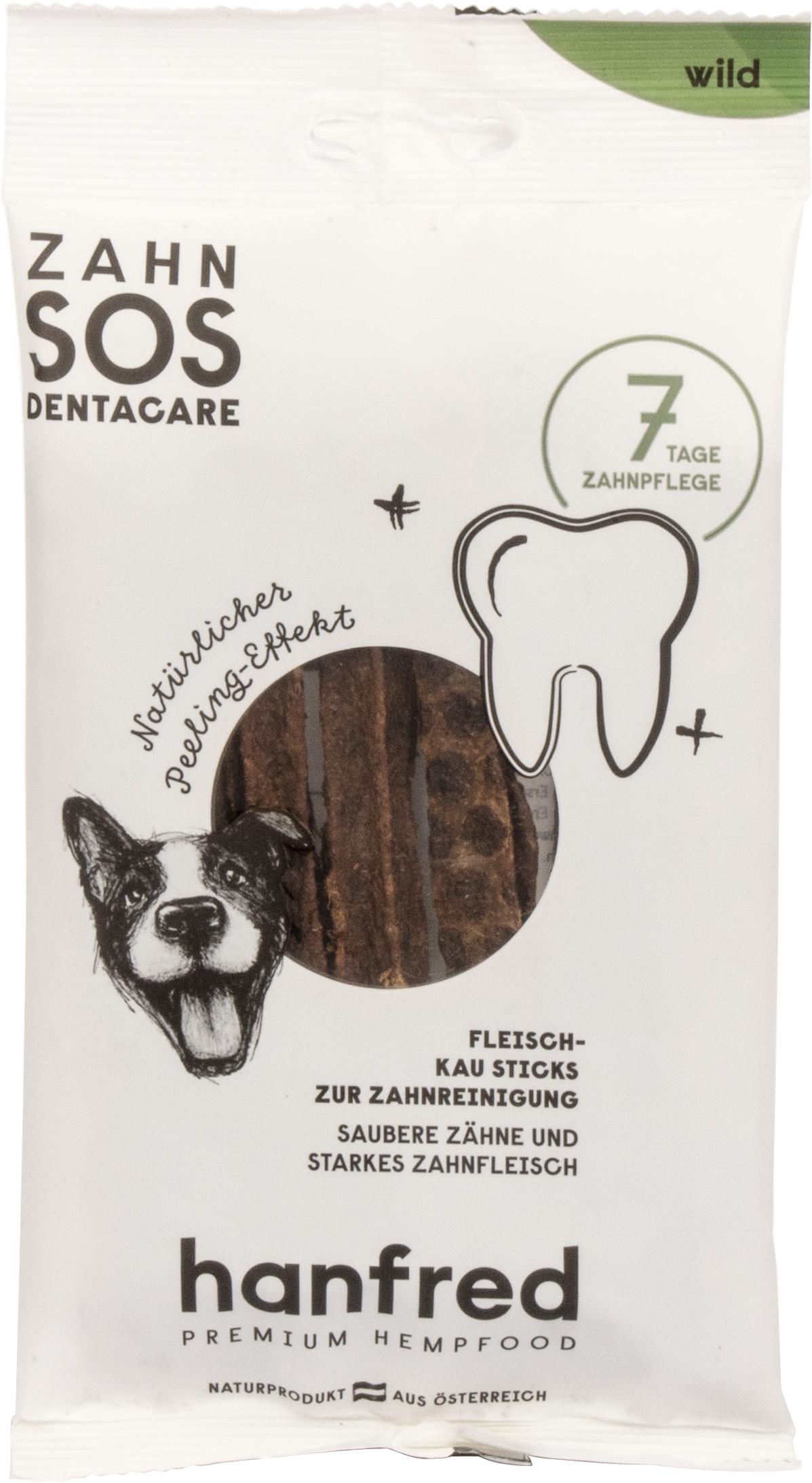 Грижете се за зъбите на вашето куче с вкусно лакомство всеки ден. Лакомствата Dentacare са направени от висококачествено дивечово мускулно месо (85%) и фино смлени конопени семена (15%). Грубата повърхност може да помогне за премахването на плаката по време на дъвчене – напълно без изкуствени добавки.