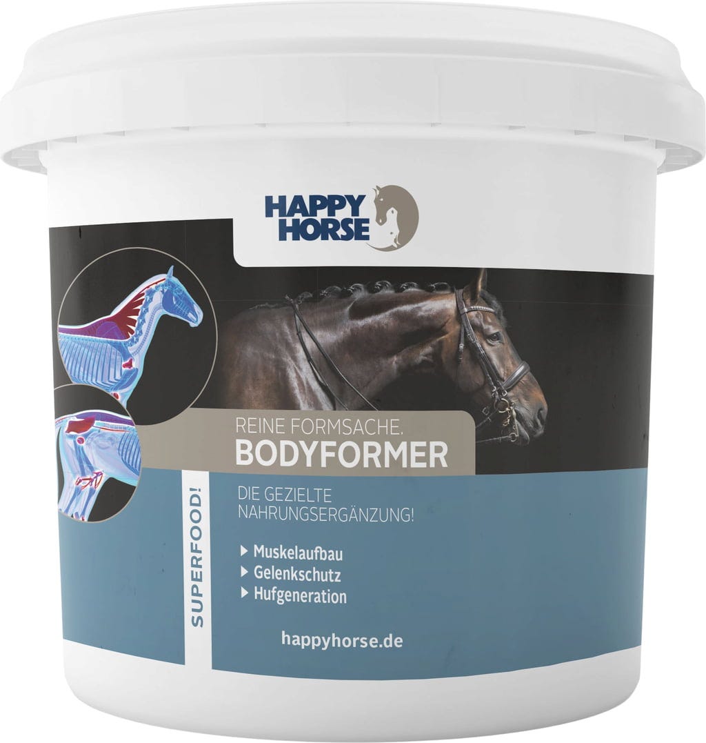 Bodyformer от Happy Horse внимателно подбира хранителни вещества, които могат да допринесат за подкрепата на целия опорно-двигателен апарат и благосъстоянието на коня, се сливат в уникална рецепта. Happy Horse си е поставила за задача да допринесе за изграждането на мускулите, ставната функция и регенерацията на копитата чрез цялостна хранителна формула и по този начин да подкрепи радостта от спортната и жизнената активност.