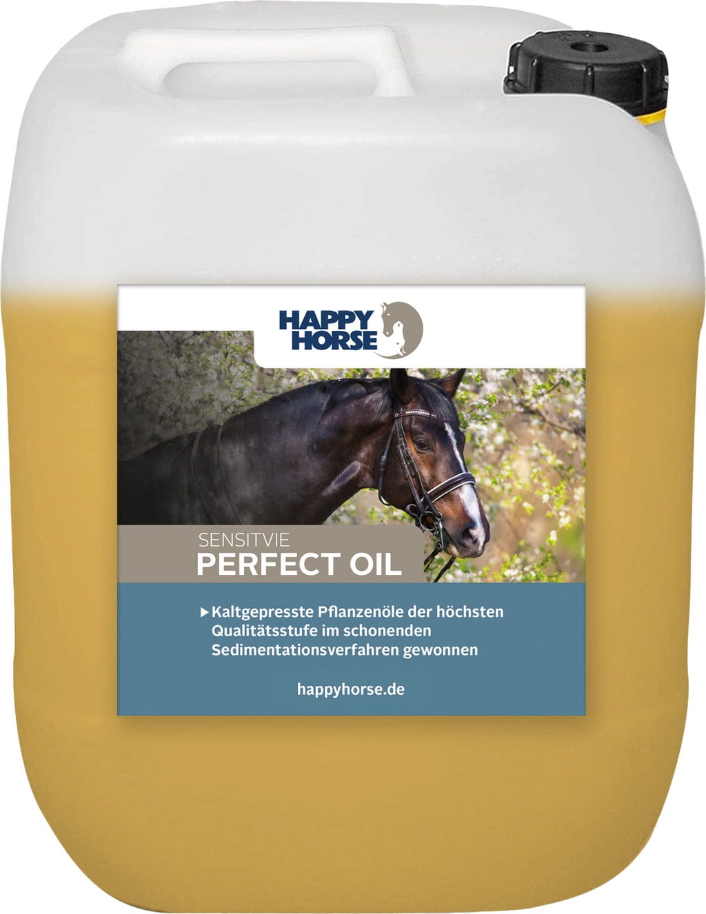 Специалната маслена смес от ленено масло, слънчогледово масло, царевично масло, масло от пшеничен зародиш и натурални билкови масла обещава първокласен спектър от мастни киселини и съдържа изобилие от вторични растителни вещества. За Perfect Oil от Happy Horse се използват само растителни масла, получени чрез щадящия метод на седиментация. Това е процес, при който те се пресоват студено под 40 °C при умерено налягане и след това се обират чрез процеса на седиментация. По този начин се избягват термични, химични и механични натоварвания и чувствителните мастни киселини се запазват по най-добрия възможен начин. С високо съдържание на ендогенното вещество простагландини.