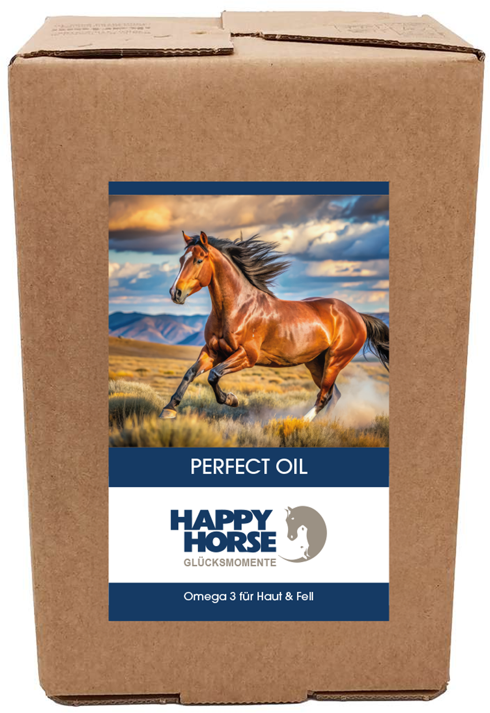 Искате ли да предложите на коня си висококачествен източник на масло? Happy Horse Perfekt Oil се състои от чисто, студено пресовано ленено масло – без никакви добавки. То осигурява важни омега-3 и омега-6 мастни киселини и е идеално за ежедневно хранене. Идеално за грижа за козината и за подпомагане на енергийния прием.