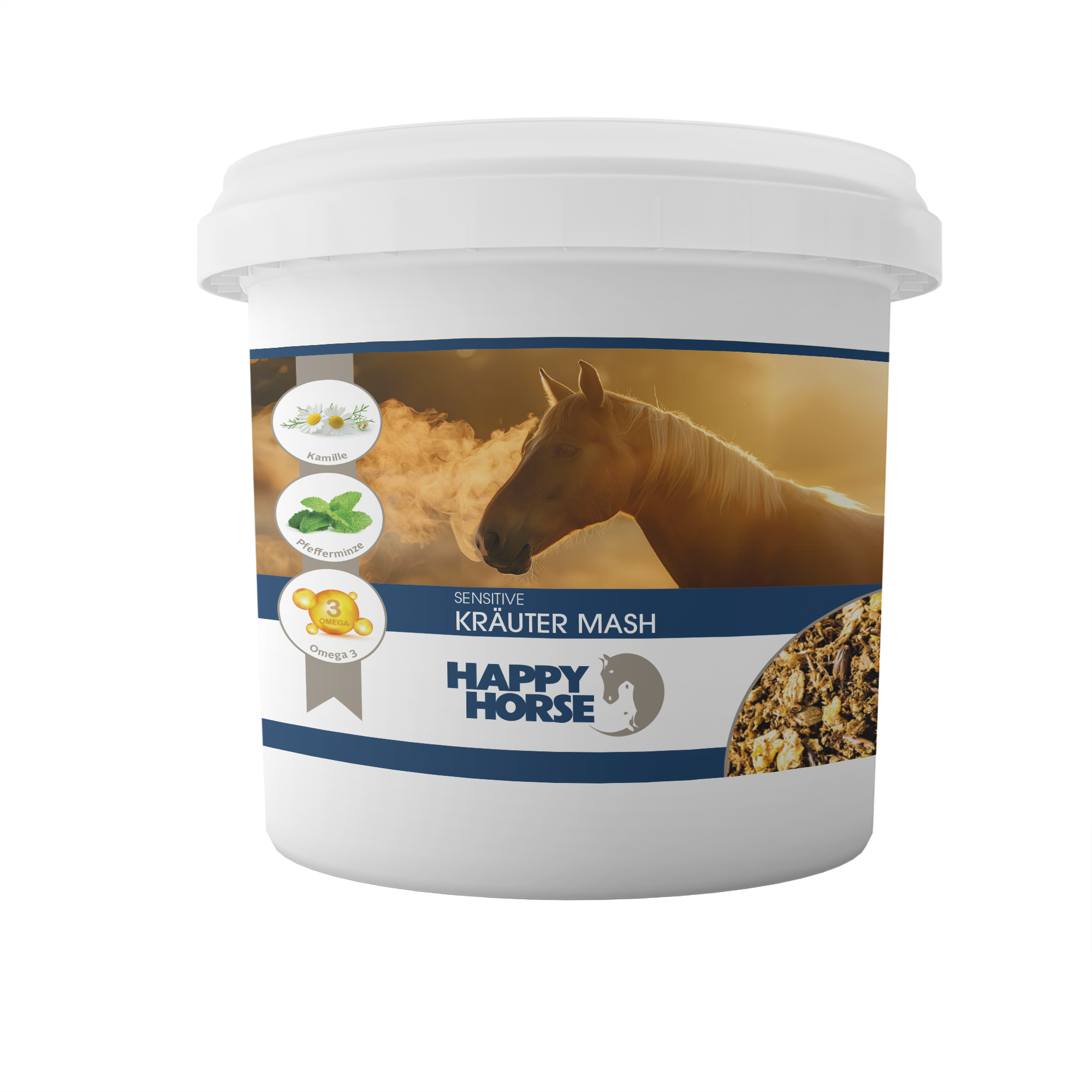 Happy Horse Sensitiv Kräuter Mash е идеалното допълнение за коне с чувствително храносмилане. Сместа от резене, мента, както и подбрани витамини и минерали, подпомага ежедневното хранене, особено в периоди на голямо натоварване или при смяна на времето.