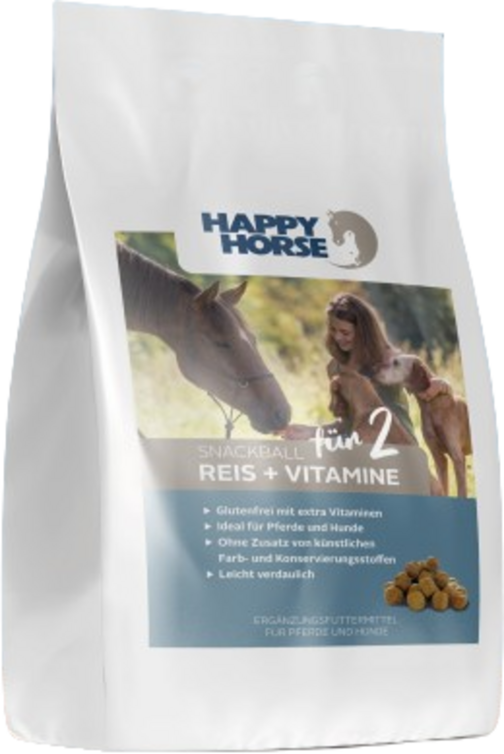 Snackballs за двама са особено популярно лакомство за между храненията. С простата, естествена рецепта от царевица, ориз и люцерна Happy Horse предлага лесен начин да „убиете два заека с един куршум“ или по-точно: да възнаградите коня и кучето с едни и същи лакомства от една ръка! Оптимизирани с допълнително количество витамини.