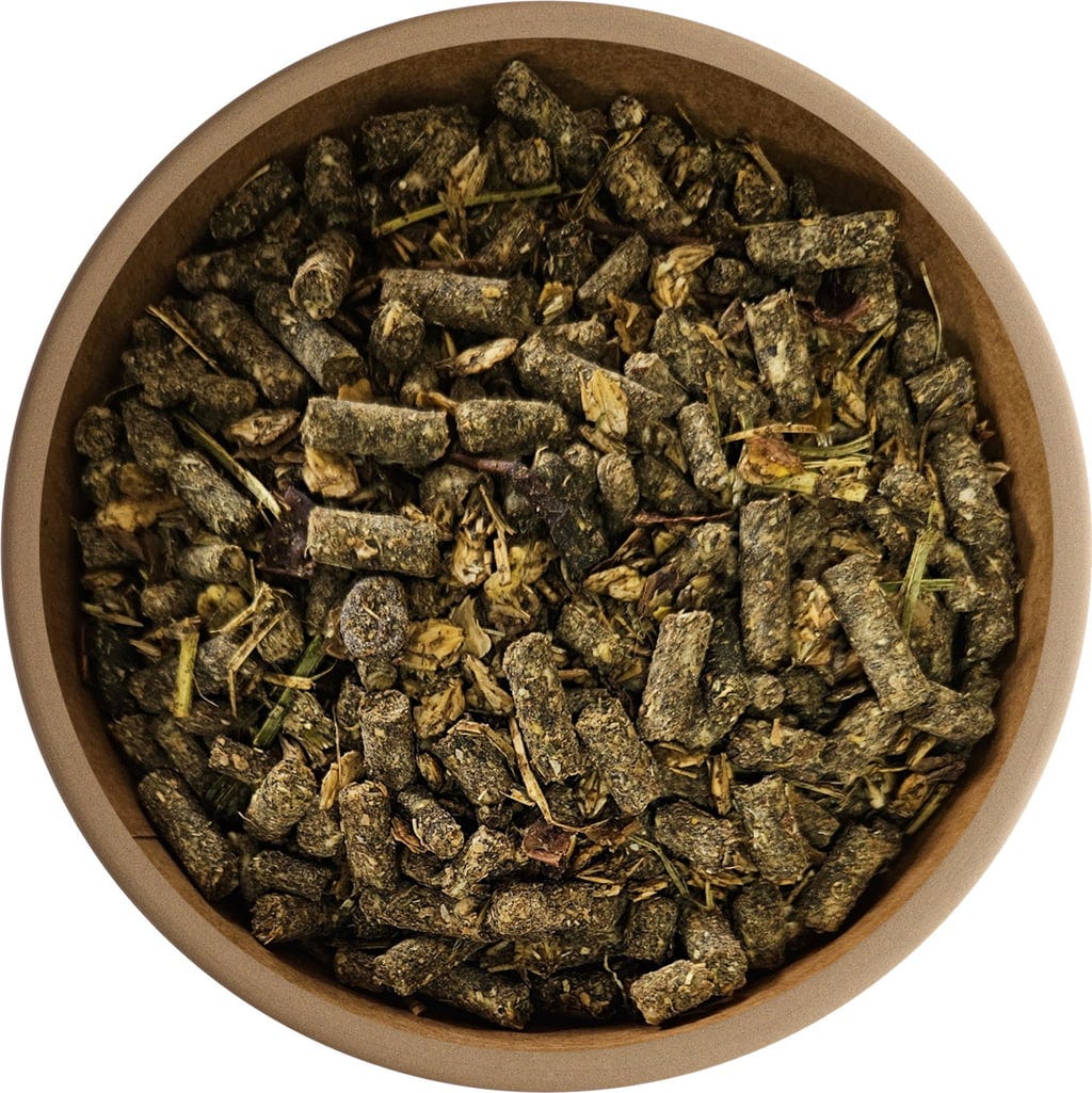 Flockenmischung lactofermentiert (Gerste, царевица), Weizenkleie, Palatinose, Haferschälkleie, Weidegras warmluftgetrocknet niederglykämisch, Obstfasern (ябълка, Traube), микс от кюспе (Leinsamen, слънчогледови семки, Maiskeime, Черен кимион), Luzernehäcksel, Calciumcarbonat maritim und mineralisch, Rübenfasern entmelassiert, Maiskeime, Билки (Pfefferminze, Thymian, Розмарин, Brennnessel, Kamille, Fenchel, магданоз, Liebstöckel, майорана, Семена от сминдух), студено пресована маслена смес (Leinsamen, слънчогледови семки, Maiskeime, Черен кимион), Сол, Kanne Fermentgetreide, конопени семена, Бирена мая, Rote Bete, Dicalciumphosphat, Чесън, Malz-Hefe-Würze, Hagebutte, оцет, Magnesiumoxid, zertifizierte Futterpflanzenkohle, Брашно от грахови люспи, магнезиев сулфат, Magnesiumcitrat, Ванилия