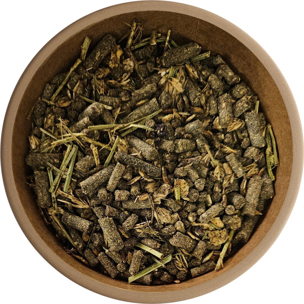 Flockenmischung lactofermentiert (Gerste, царевица), Reiskleie, Palatinose, Weizenkleie, Grashäcksel warmluftgetrocknet niederglykämisch, Haferschälkleie, Luzernehäcksel, микс от кюспе (Leinsamen, слънчогледови семки, Черен кимион), Obstfasern (ябълка, Traube), Rübenfasern entmelassiert, Maiskeime, студено пресована маслена смес (слънчогледови семки, Черен кимион), Сол, варовик от морски водорасли, кълнове от ечемик, Kanne Fermentgetreide, конопени семена, Calciumcarbonat, Билки (Pfefferminze, Thymian, Розмарин, Fenchel, Brennnessel, Kamille, магданоз, Liebstöckel, майорана, Семена от сминдух), Dicalciumphosphat, Rote Bete, Magnesiumoxid, Malz-Hefe-Würze, Чесън, Hagebutte, zertifizierte Futterpflanzenkohle, морков, магнезиев сулфат, Erbsenflocken lactofermentiert, магнезиев фумарат, магнезиев ацетат, магнезиев фосфат, Сол, Kurkuma