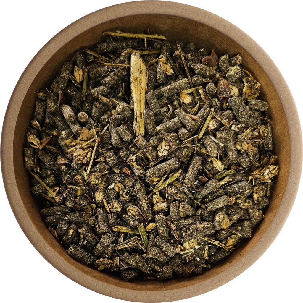 Flockenmischung lactofermentiert (Gerste, царевица), Weizenkleie, Palatinose, Haferschälkleie, Grashäcksel warmluftgetrocknet niederglykämisch, микс от кюспе (Leinsamen, слънчогледови семки, Черен кимион), Obstfasern (ябълка, Traube), Luzernehäcksel, Rübenfasern entmelassiert, Maiskeime, студено пресована маслена смес (Leinsamen, слънчогледови семки, Черен кимион), Сол, Calciumcarbonat, варовик от морски водорасли, Бирена мая, Kanne Fermentgetreide, конопени семена, Билки (Pfefferminze, Thymian, Розмарин, Brennnessel, Kamille, Fenchel, магданоз, майорана, Семена от сминдух), Dicalciumphosphat, Malz-Hefe-Würze, Чесън, оцет, Leinsaat gemahlen, Magnesiumoxid, Био въглища, морков, Брашно от грахови люспи, магнезиев сулфат, магнезиев фумарат, бананово брашно, Kurkuma
