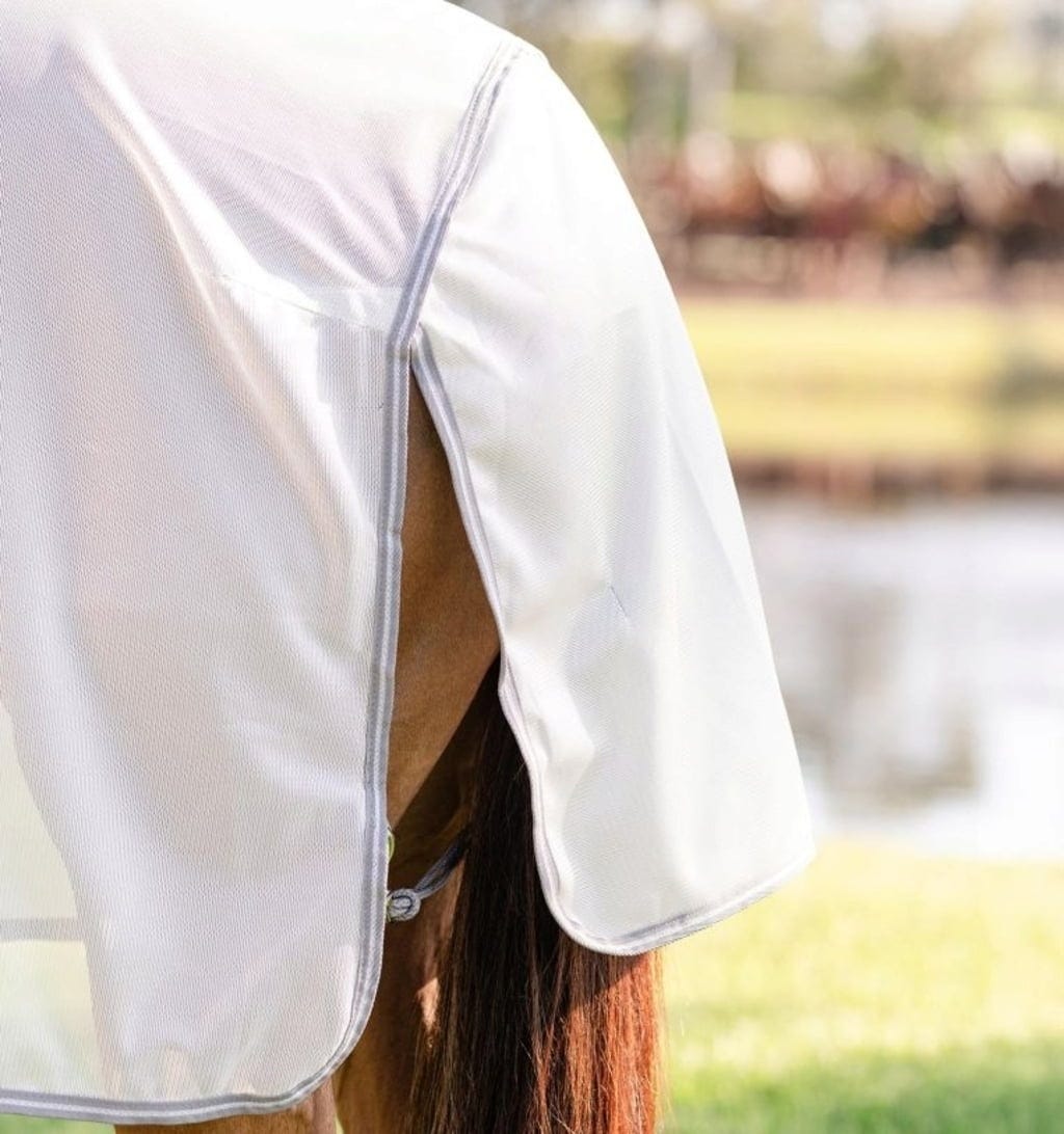 Това издръжливо и дишащо покривало за пони от Horseware Ireland надеждно предпазва вашето пони от насекоми и UV лъчи. Слънцеотразяващият материал на плътно тъканата материя осигурява 65% UV защита.