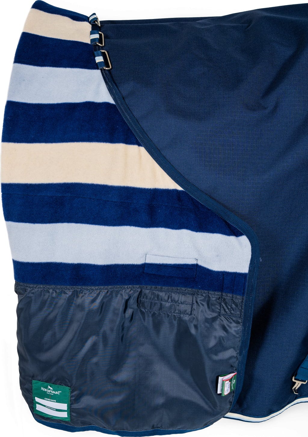 Това покривало за извивки от Horseware Ireland е изработено от 900D рипстоп плат, подплатено с полар, дишащо и водоустойчиво. Гланцираната му подплата спомага за красива козина и предотвратява триене и протриване. Двойното, право закопчаване на гърдите осигурява допълнителна сигурност. Отворите за предните крачоли осигуряват максимална свобода на движение, а две регулируеми презрамки на корема и регулируема презрамка на опашката гарантират сигурно прилягане.