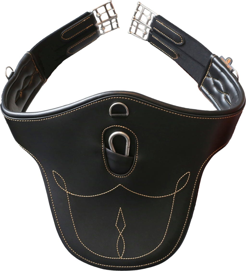 Този подпруга от синтетична кожа с широка защита за шипове е анатомично оформен и приляга удобно и свободно около корема на коня. Раменете и лактите остават свободни, което минимизира риска от протриване. EVA подплата от вътрешната страна и еластичните вложки в двата края осигуряват равномерно разпределение на налягането. Той разполага с всички детайли, които бихте очаквали от висококачествена подпруга за шипове.