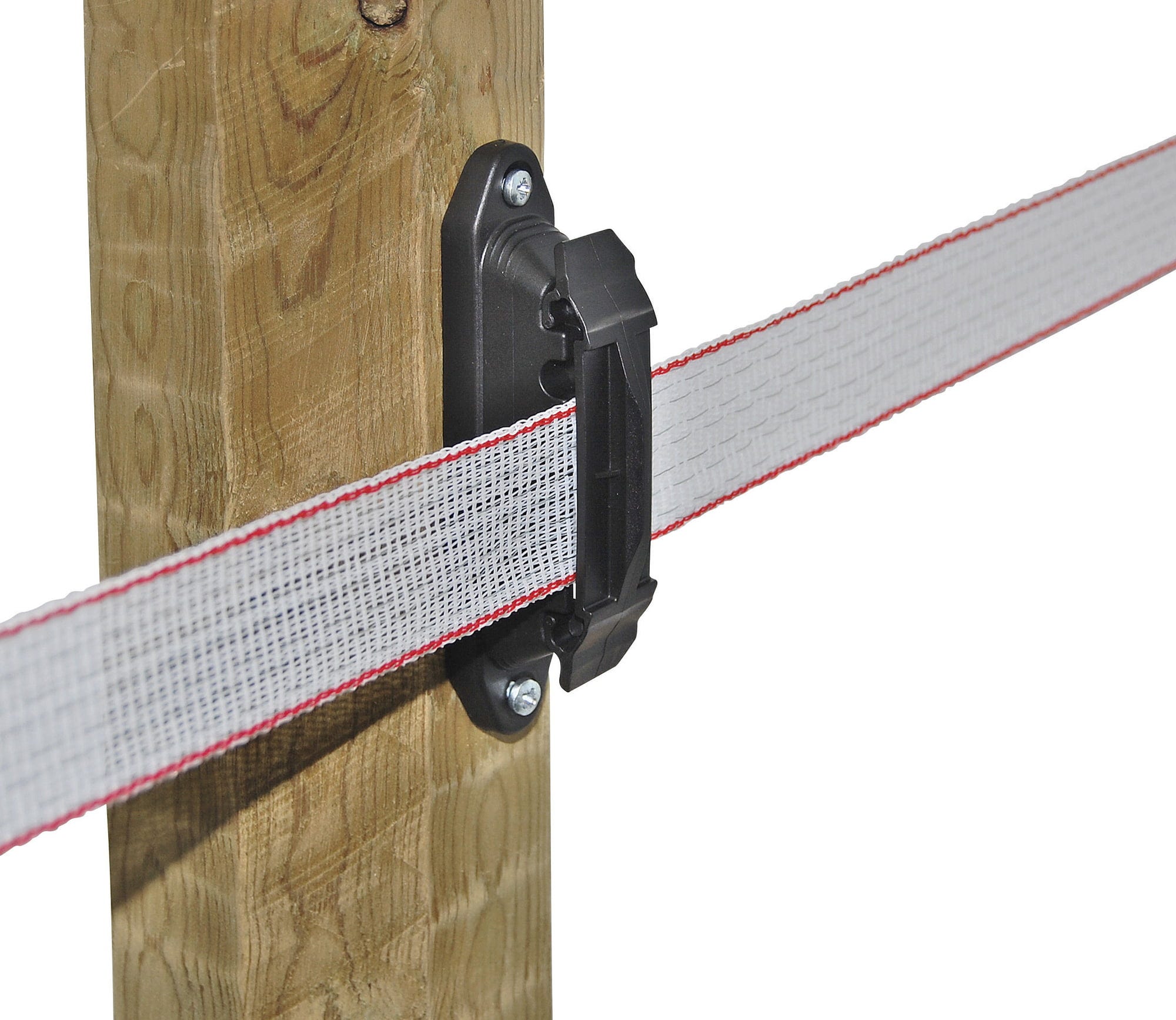 Практични скоби-изолатори, подходящи и за монтаж върху съществуващи огради. UV-стабилизираната пластмаса може да се завинтва или заковава. Снабдени с неплъзгащи се гумени вложки, лентите са оптимално закрепени, което увеличава живота им. Подходящи за електрически огради с ширина до 40 мм.