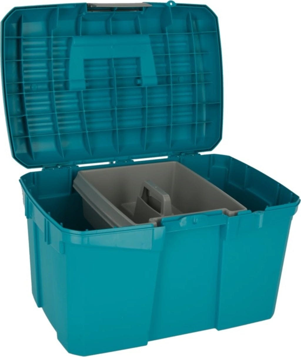 Класическа кутийка за оформяне, изработена от здрава пластмаса. Здравата ѝ конструкция може да издържи натоварване до 100 кг, когато е затворена. Включва подвижна вложка и държач за четки.