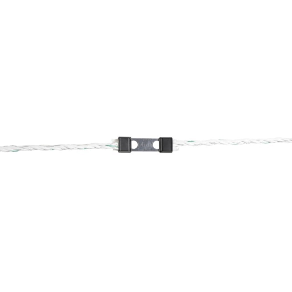 Тези съединители Litzclip стабилизират краищата на две въжета на електрическа ограда. Те са бързо решение за професионален ремонт на скъсано въже за електрическа ограда. Перфорираните отвори с форма на ключ улесняват поставянето и здравото закрепване на краищата на въжетата.