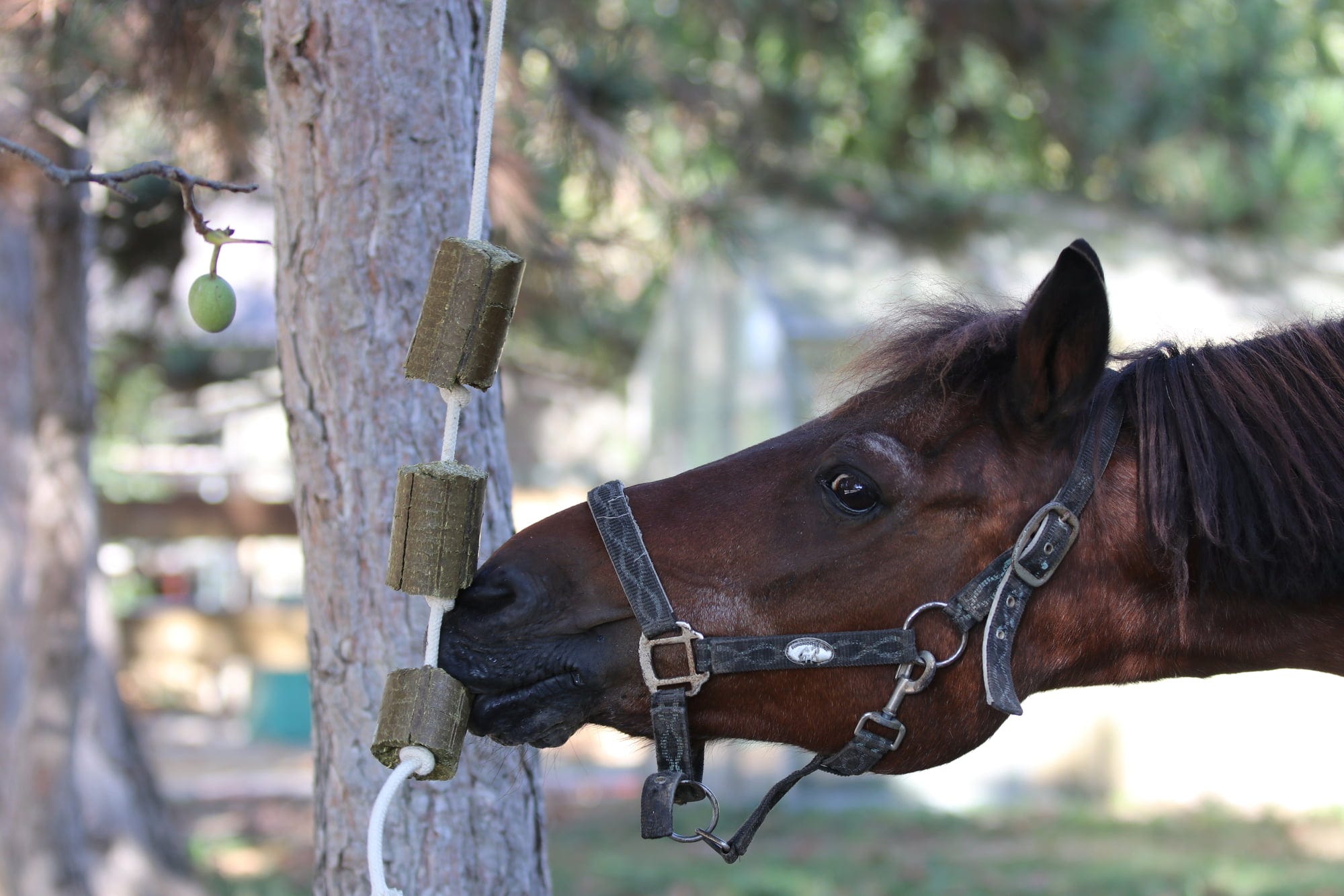 С тези въжета за игра с люцерна, вашият кон ще се наслади на вълнуващо гризане и забавление по време на игра. Тази груба храна за хапване се състои от 100% люцерна (от контролирано отглеждане), която е нежно и експертно пресована на брикети. След това те се нанизват на въже, което може лесно да се окачи в конюшнята, конюшнята или на открито.