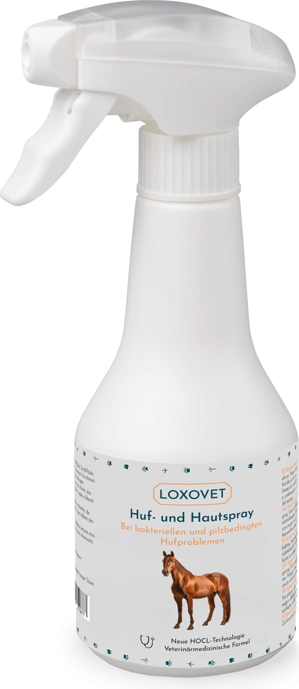 Почистете засегнатите зони и след това нанесете обилно количество спрей. Може да се използва няколко пъти на ден, както и в комбинация с гел LOXOVET Hoof & Skin.