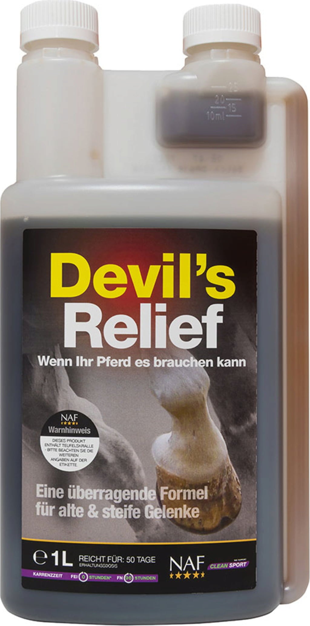 Devil's Relief е формула от висококачествени билкови екстракти, комбинирани с африканската билка Дяволски нокът. Тя е особено известна със способността си да осигурява подкрепа при скованост и ограничена подвижност. Като цяло, внимателно подбраният състав може да подпомогне опорно-двигателния апарат на коне от всички възрасти, но особено на по-възрастни коне, а също така може да допринесе за подобряване на храносмилането.