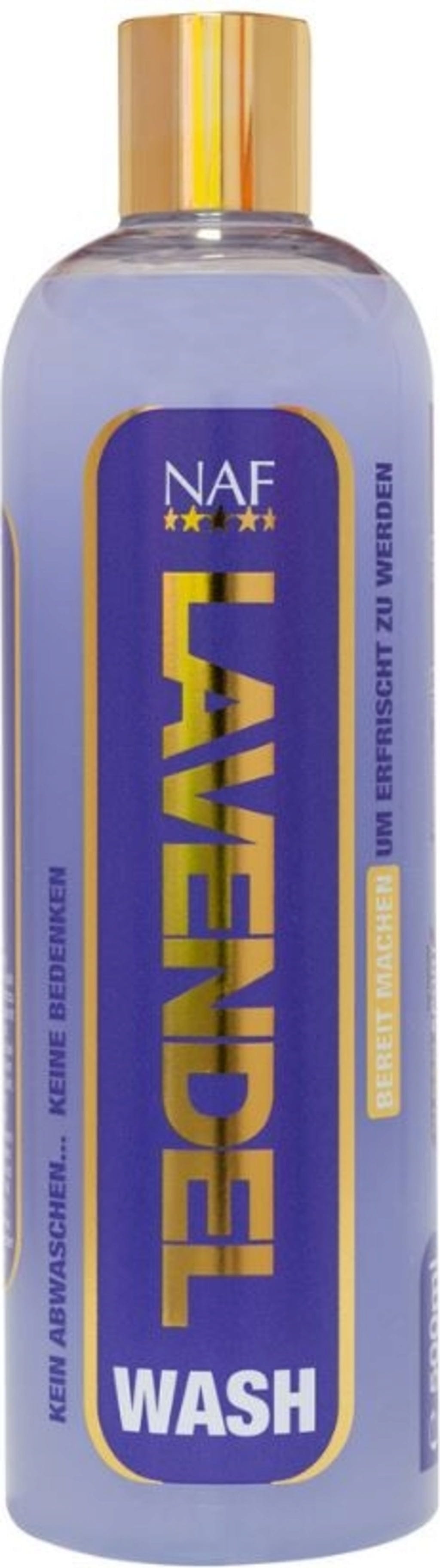 Почистете коня си след езда без много усилия. Благодарение на етеричното масло от лавандула, Lavender Wash на NAF премахва без усилие потта и мръсотията. Продуктът за грижа без сапун, детергент или сгъстител се нанася обилно с вода и гъба, без последващо изплакване. За бързо, но цялостно почистване след работа.