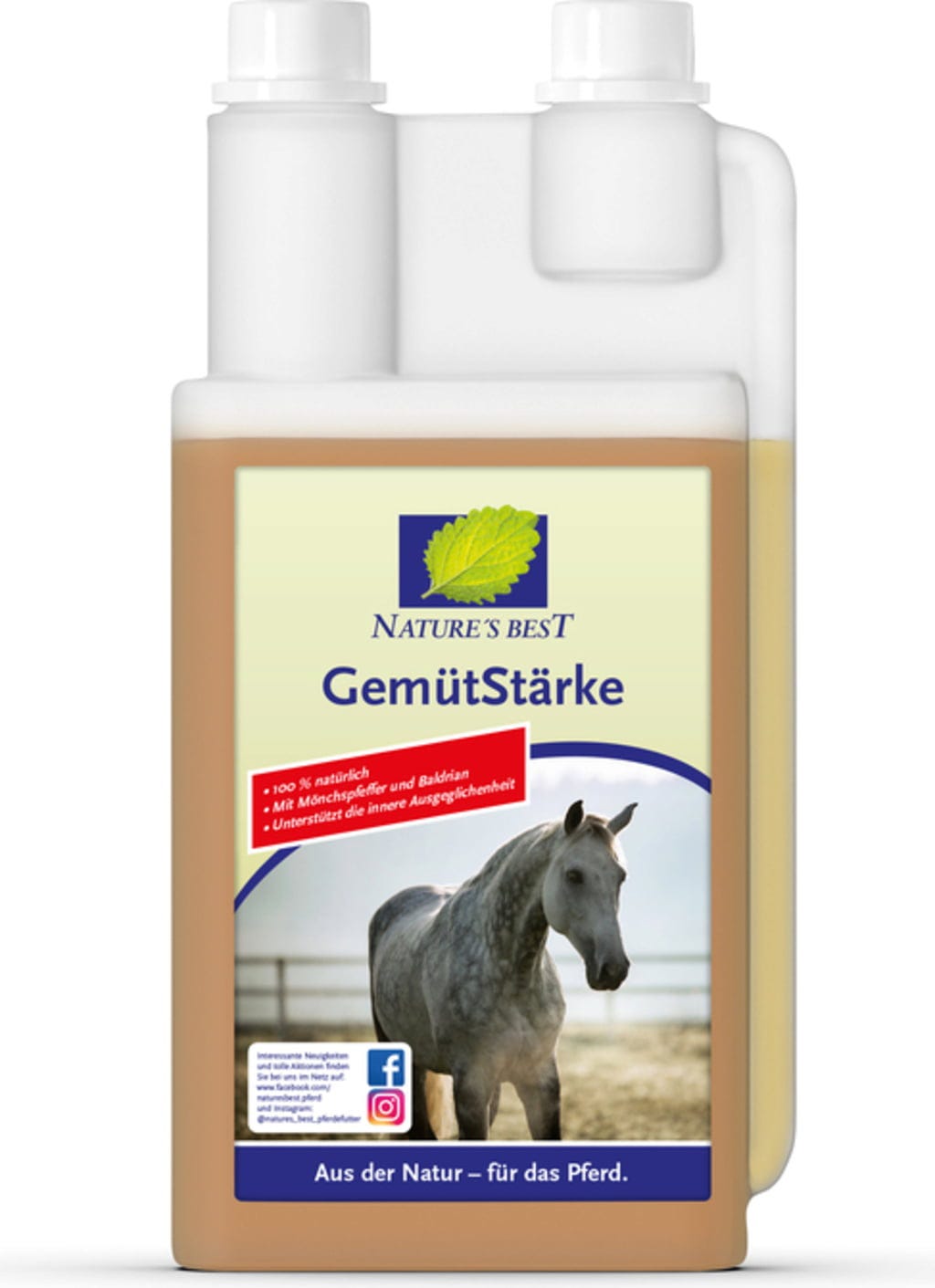Дори в ежедневието на всеки кон могат да възникнат различни стресови фактори, които да нарушат емоционалния му баланс. Примери за това са разногласия в стадото или периодът на еструс при кобилите. С GemütStärke, Nature's Best разработи сок, който може да подпомогне конете в стресови моменти, с внимателно подбрани билки като древен хмел, маточина, листа от малина и валериана.