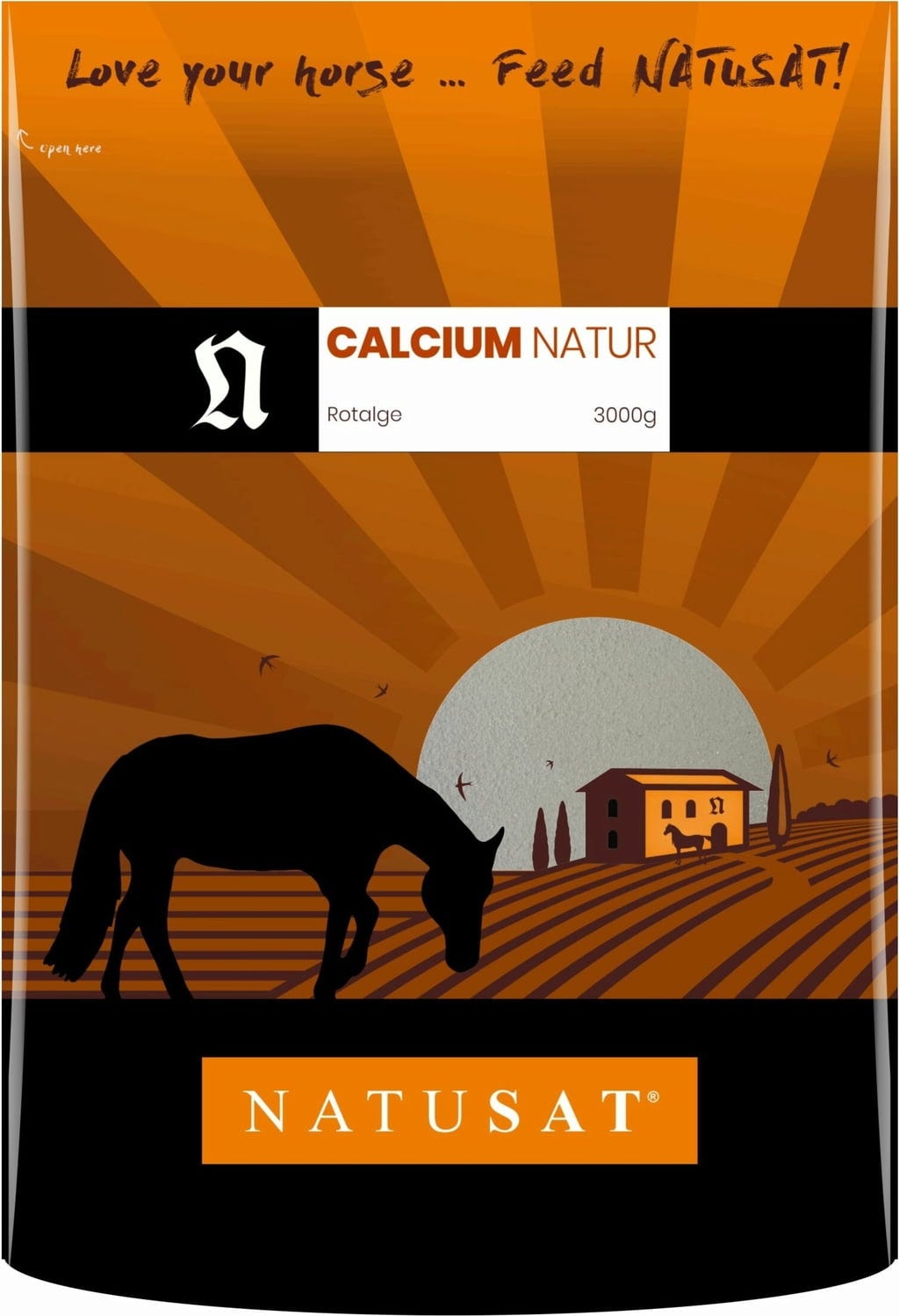 Натуралният продукт на NATUSAT CALCIUM NATUR е фин прах, направен от морските водорасли Lithothamnium calcareum (червени водорасли), които абсорбират важни естествени минерали и витамини от солената вода. Той е особено богат на калций, което го прави отлична естествена добавка и чудесен начин за обогатяване на дневната хранителна дажба за коне. Калцият може да подпомогне опорно-двигателния апарат и може да се добавя към храната на конете, например по време на бременност или растеж. Може също да помогне за поддържане на стомашно-чревния тракт.