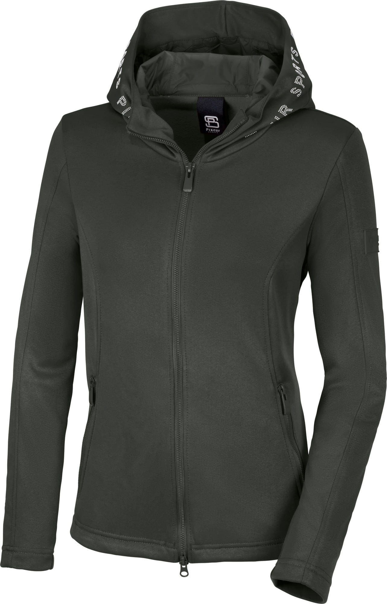 Брандирането PIKEUR Sports с бели кристали върху качулка добавя нотка блясък. Освен това е еластично, бързосъхнещо, отвеждащо потта и дишащо, за да осигури комфортно изживяване дори по време на интензивни дейности на седлото.