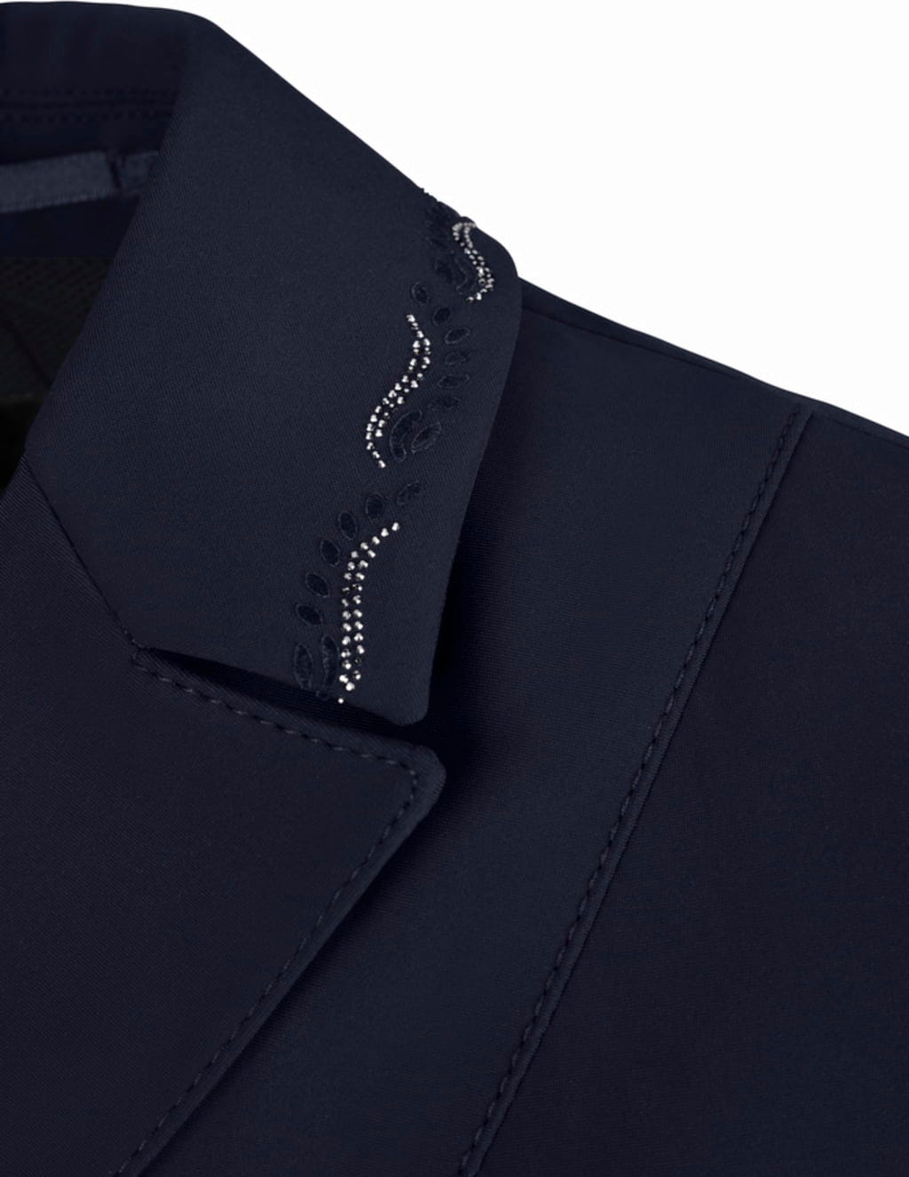 - Малък джоб на гърдите с апликация от кристали в тон