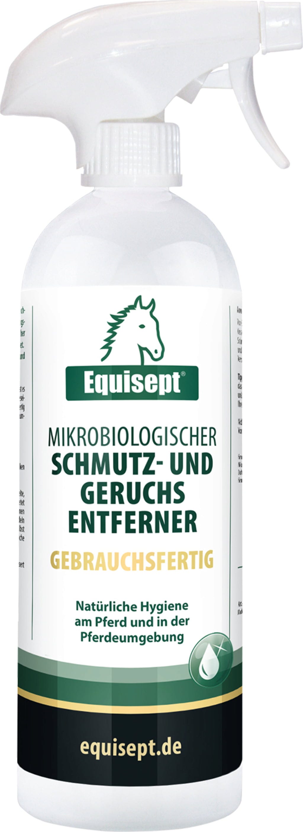 Този препарат за премахване на замърсявания и миризми е не само отличен за почистване на конюшни, боксове, ремаркета, текстил, оборудване за груминг и много други, премахвайки замърсявания и неприятни миризми, но може да се използва и директно върху коня. Тъй като не съдържа аромати, той няма да раздразни чувствителния нос на коня и без усилие премахва замърсявания и петна от урина от козината.