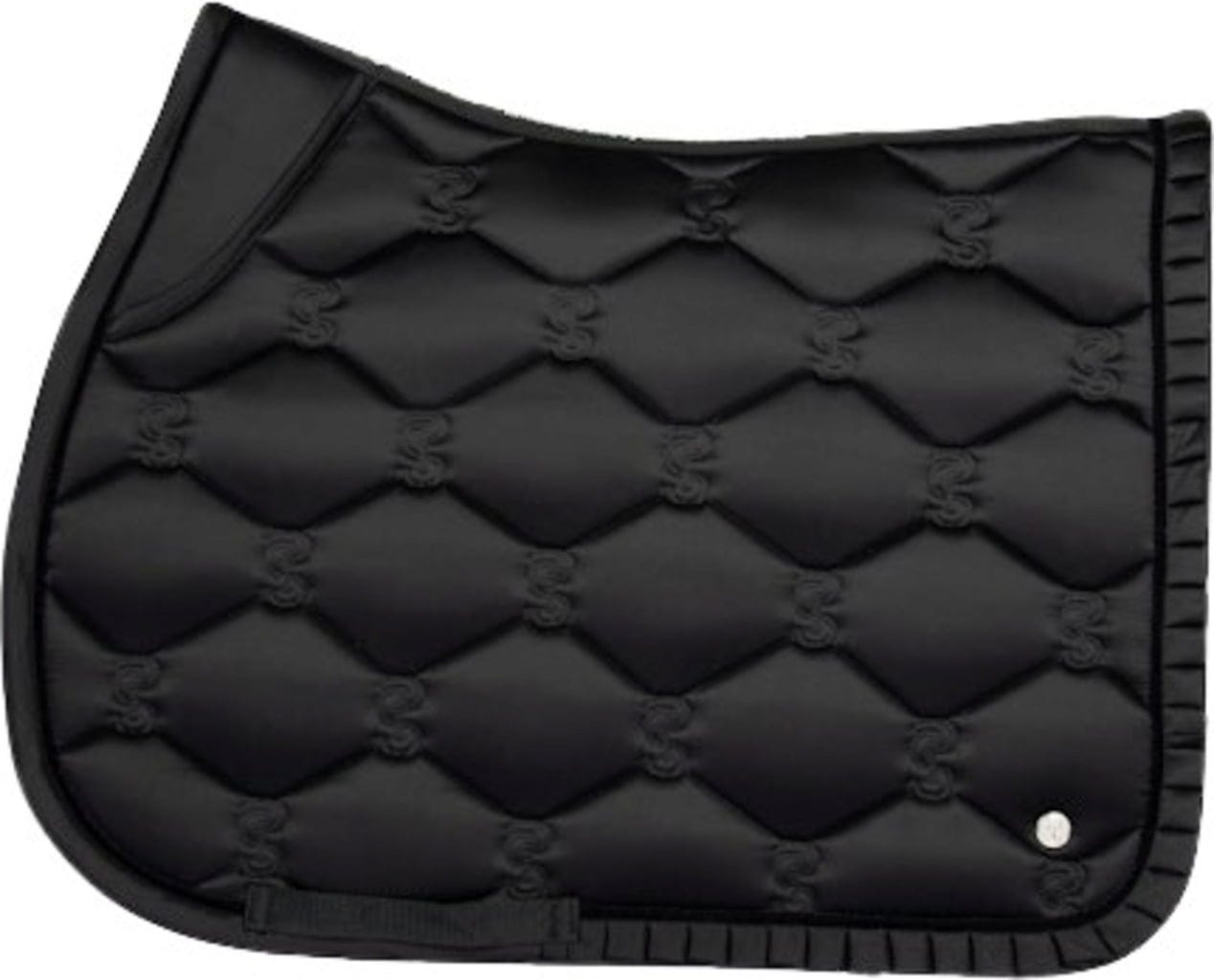 Истински акцент са декоративните волани, които превръщат подложката в истински привличащ вниманието елемент. Супер бързосъхнещата подплата ефективно отвежда влагата и потта, така че подложката да е готова за употреба по-бързо след езда. Ексклузивният дизайн се допълва от емблематичния цитат на PS по протежение на гръбначния стълб, ремъци за опас с бродирано лого на марката и метално лого отстрани.