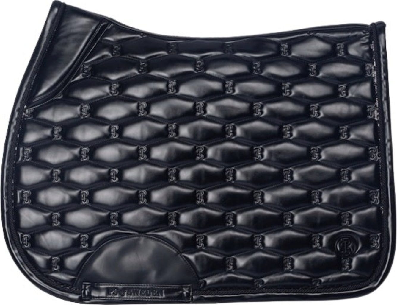 Подложката за седло за прескачане Dazzling Metallic впечатлява с елегантен блясък и практична функционалност. Анатомичният дизайн предлага допълнително пространство при холката, което осигурява на коня ви максимална свобода на движение. Средното подплатяване осигурява стабилно прилягане по време на скоковете.