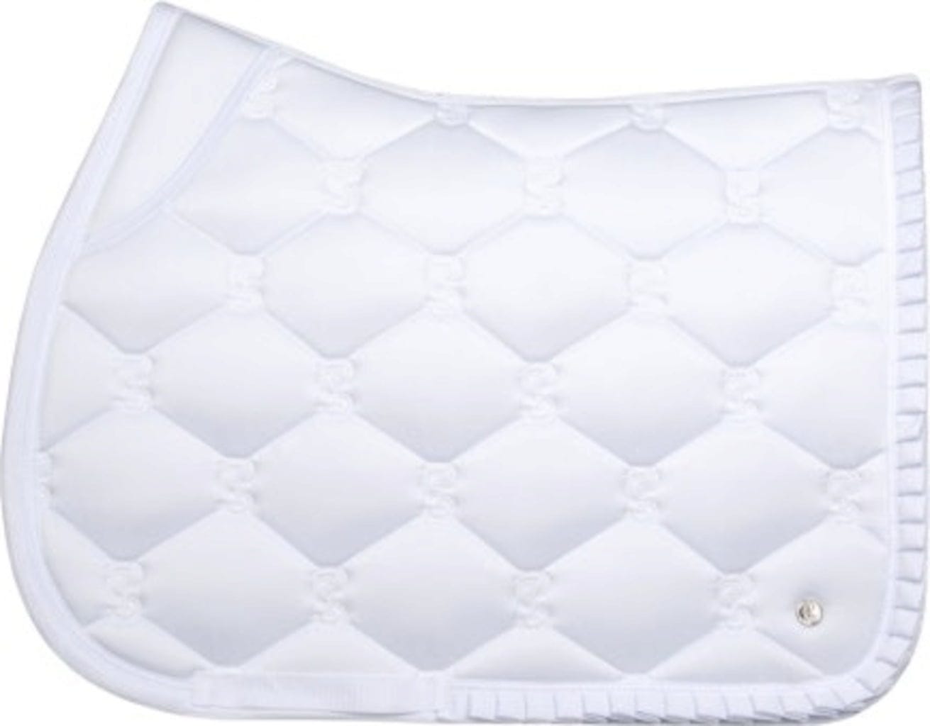 Истински акцент са декоративните волани, които превръщат подложката в специален акцент. Изключително бързосъхнещата подплата ефективно отвежда влагата и потта, така че подложката да е готова за употреба по-бързо след езда. Ексклузивният дизайн се допълва от емблематичния цитат на PS по протежение на гръбначния стълб, ремъци за опас с бродирано лого на марката, както и метално лого отстрани.