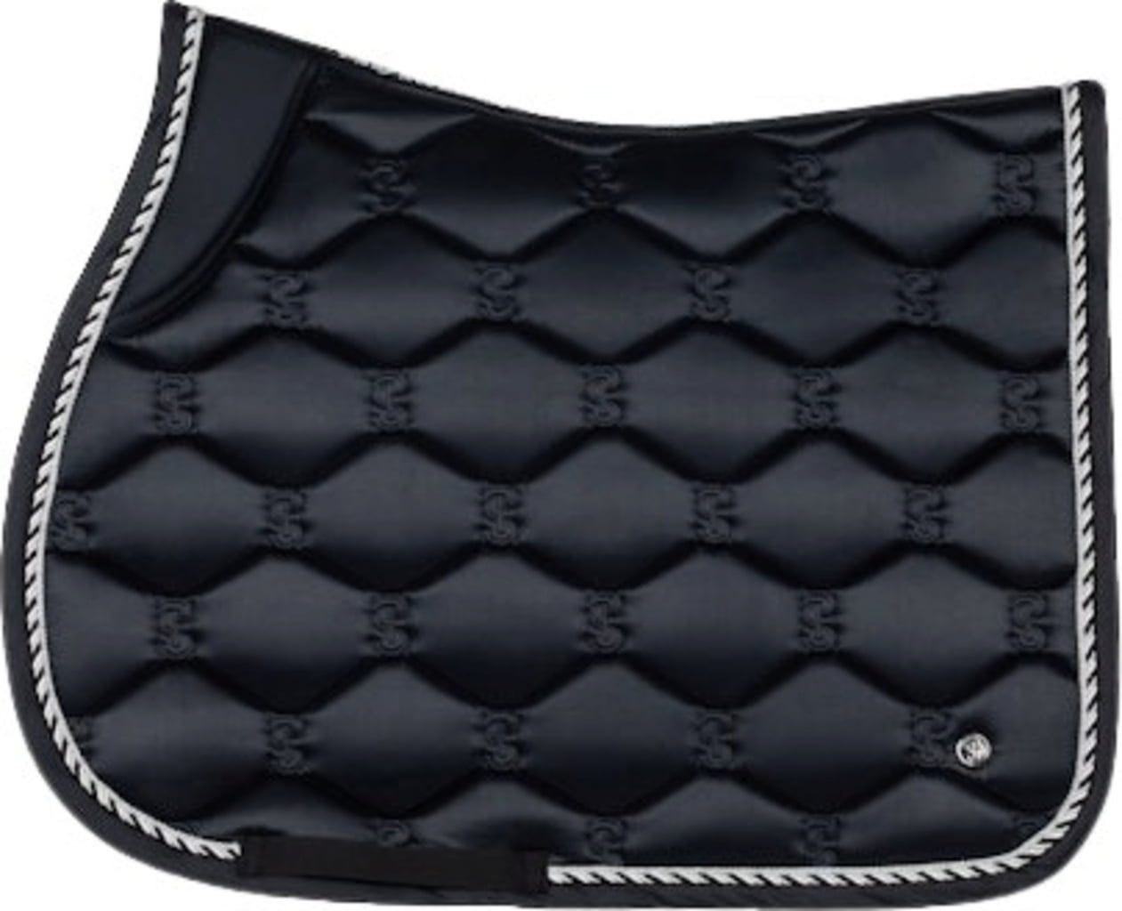 За стабилност по време на езда се грижат елементите Stop Cushions, както и средно дебелото подплатяване, които предотвратяват плъзгането. Висококачествената изработка се допълва от каишки за колан с бродирано лого на марката и декоративен цитат по протежение на гръбначния стълб. Това прави тази подложка за седло привличаща вниманието както при ежедневни тренировки, така и по време на състезания.