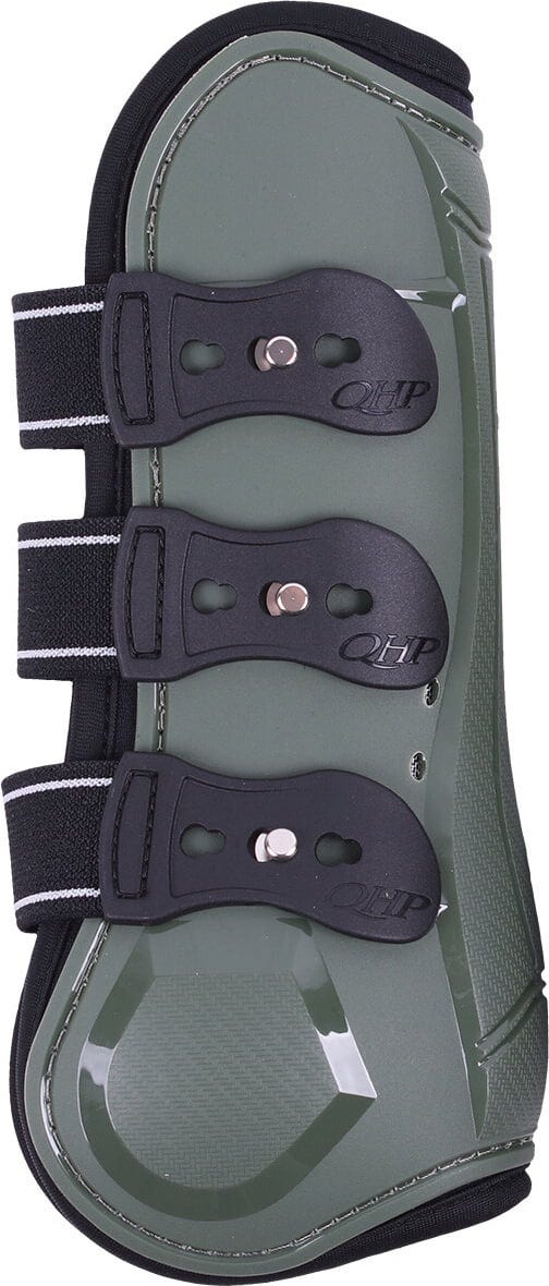 Тези спортни гамаши с твърда черупка в елегантен маслиненозелен цвят са разработени, за да предпазват надеждно сухожилията на задните крака на вашия кон от удари и сблъсъци. Те предлагат идеална комбинация от максимална защита и ефективно управление на топлината благодарение на интелигентната технология на материалите.