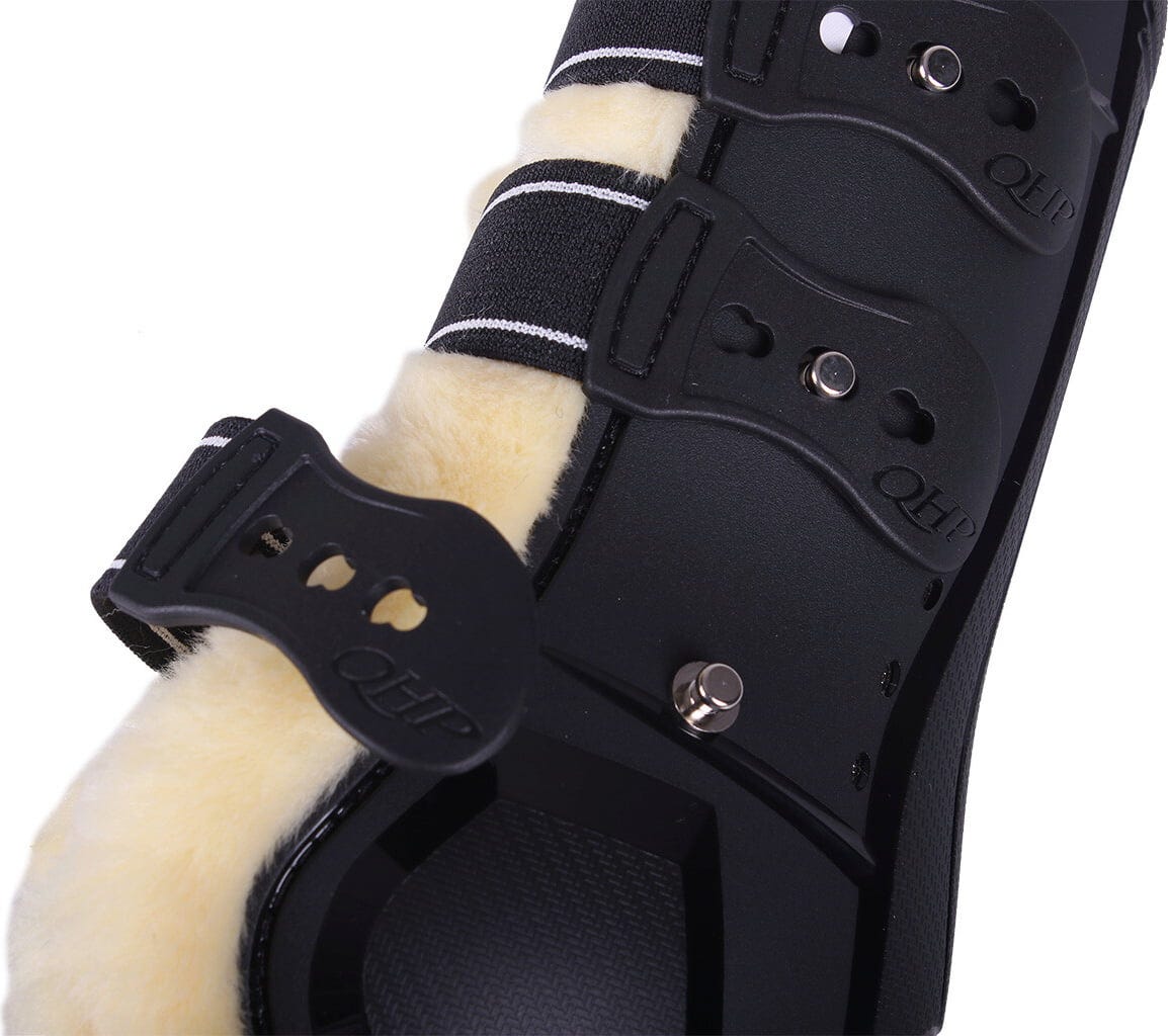 Проектирани за максимална защита и най-висок комфорт, тези гамаши в стилно черно са оптималният избор за коне с чувствителна кожа. Подплатата от мека изкуствена кожа нежно приляга към краката на вашия кон и предлага допълнителна защита срещу удари и сблъсъци.
