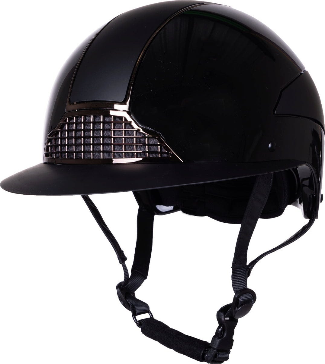 Тази впечатляваща каска за езда от QHP е идеалният избор за всички, които държат на стила и комфорта. Външната черупка впечатлява с елегантен завършек от лакирана матова повърхност, която придобива благороден вид благодарение на лекия блясък – истински привличащ погледа елемент! Специалната поло козирка не само осигурява луксозен външен вид, но и ви предлага подобрена видимост при слънчево време.