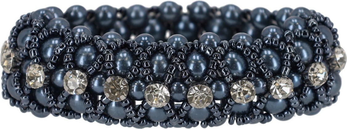Лентата е богато украсена с множество перли в различни размери. Центърът е допълнително акцентиран от големи сребристи кристали, които блестят дискретно при всяко движение. Така внасяте гламурен стил в прическата си както по време на тренировка, така и на състезание, докато кокът ви стои стабилно и спретнато!